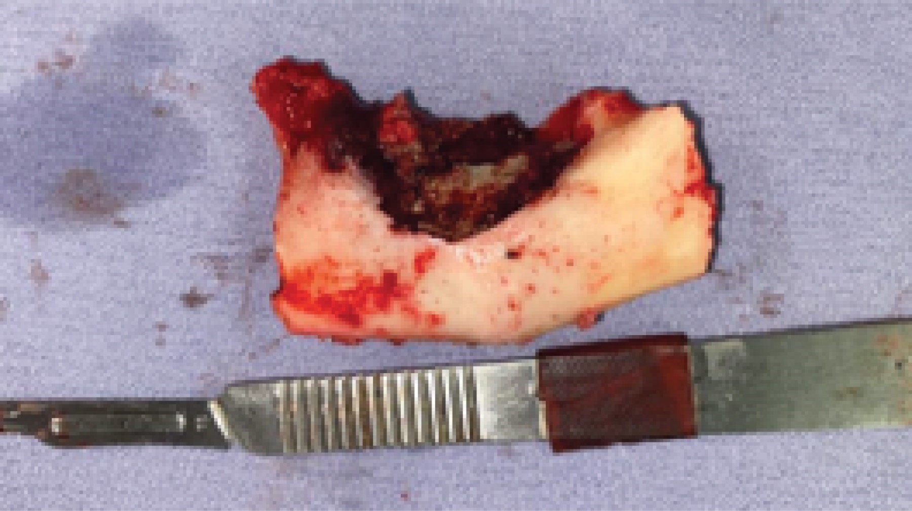 El desbridamiento y la resección marginal tienen la finalidad de eliminar el hueso necrótico dejando intacto el borde mandibular; intacto a diferencia de la resección segmentaria en la que se elimina también el borde mandibular dejando un defecto de continuidad en la mandíbula. Los porcentajes de éxito varían dependiendo el tratamiento, pero hay reportes de 90% de efectividad con resecciones segmentarias; asimismo, se ha demostrado que cuando se realiza un desbridamiento o una resección marginal, el porcentaje de éxito aumenta si el cierre se realiza por planos. Durante el desbridamiento se recomienda la eliminación de todos los órganos dentarios involucrados y se debe poner énfasis en no dejar bordes filosos o espículas óseas. De igual manera, es de vital importancia que todo el tejido obtenido de los procedimientos quirúrgicos sea enviado a estudio histopatológico y cultivo.24