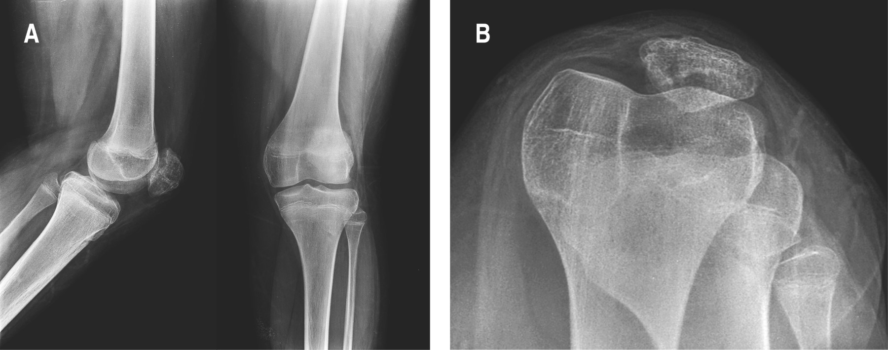 El conocimiento del patrón de osificación alrededor de la rodilla, así como las variantes normales, son esenciales para distinguir las fracturas de otras anomalías como la rótula bipartita y la enfermedad de Sinding-Larsen-Johansson.