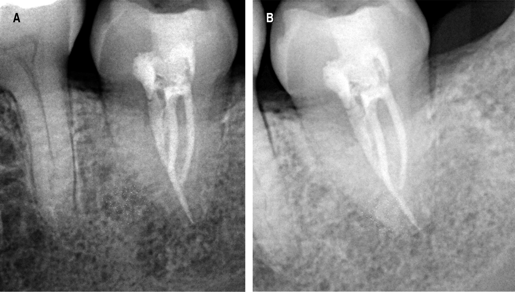 Los controles radiográficos posteriores al tratamiento, determinan el éxito del mismo. Schwetha y colegas4 recomiendan realizar radiografías periapicales: preoperatoria, postoperatoria inmediata, radiografía periapical inicial del tratamiento endodóntico, periapical final con su tratamiento de conducto, controles postendodónticos con una radiografía periapical al mes, a los tres meses, a los seis meses y al año.5