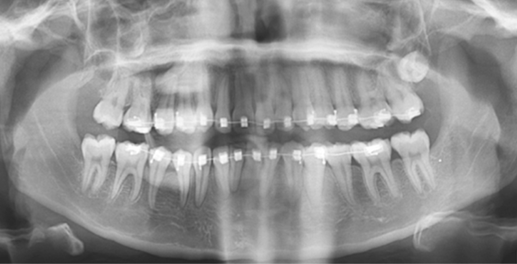 Se trata de un paciente femenino de 16 años de edad, natural y procedente de Caracas, Venezuela, sin antecedentes médicos conocidos, quien acude al Servicio de Cirugía Oral del Hospital Ortopédico Infantil para la valoración y extracción de terceros molares, los cuales clínicamente no se encontraban presentes en boca. Al examen radiográfico se observaron las unidades dentarias (UD) 18 y 28 retenidas en posición vertical según Winter a la altura de la porción apical de la raíz de la UD 17 y 27, respectivamente (Figura 1). Durante la extracción de la UD 28, dicha unidad es perdida de vista por parte del operador, por lo que solicita radiografía panorámica para su ubicación (Figura 2). Se indica antibiótico, analgésico y antiinflamatorio, así como medidas antiedema. Posteriormente, se solicita tomografía de haz helicoidal para su planificación quirúrgica.