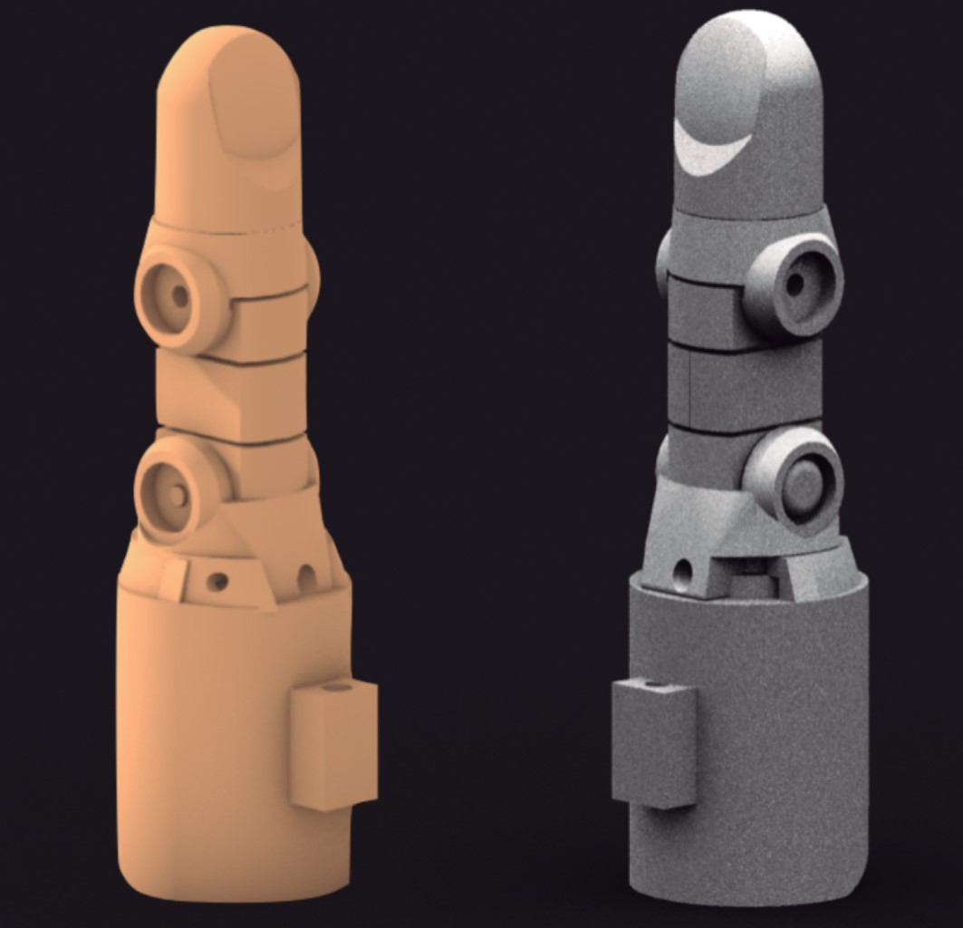 Tras la impresión, se llevó a cabo un proceso de manufactura que implicó la remoción de la placa de impresión, lijado de bordes y ensamble de piezas. Se añadió un revestimiento de plástico texturizado en la punta de la prótesis para mejorar la superficie de contacto y facilitar el agarre de objetos.