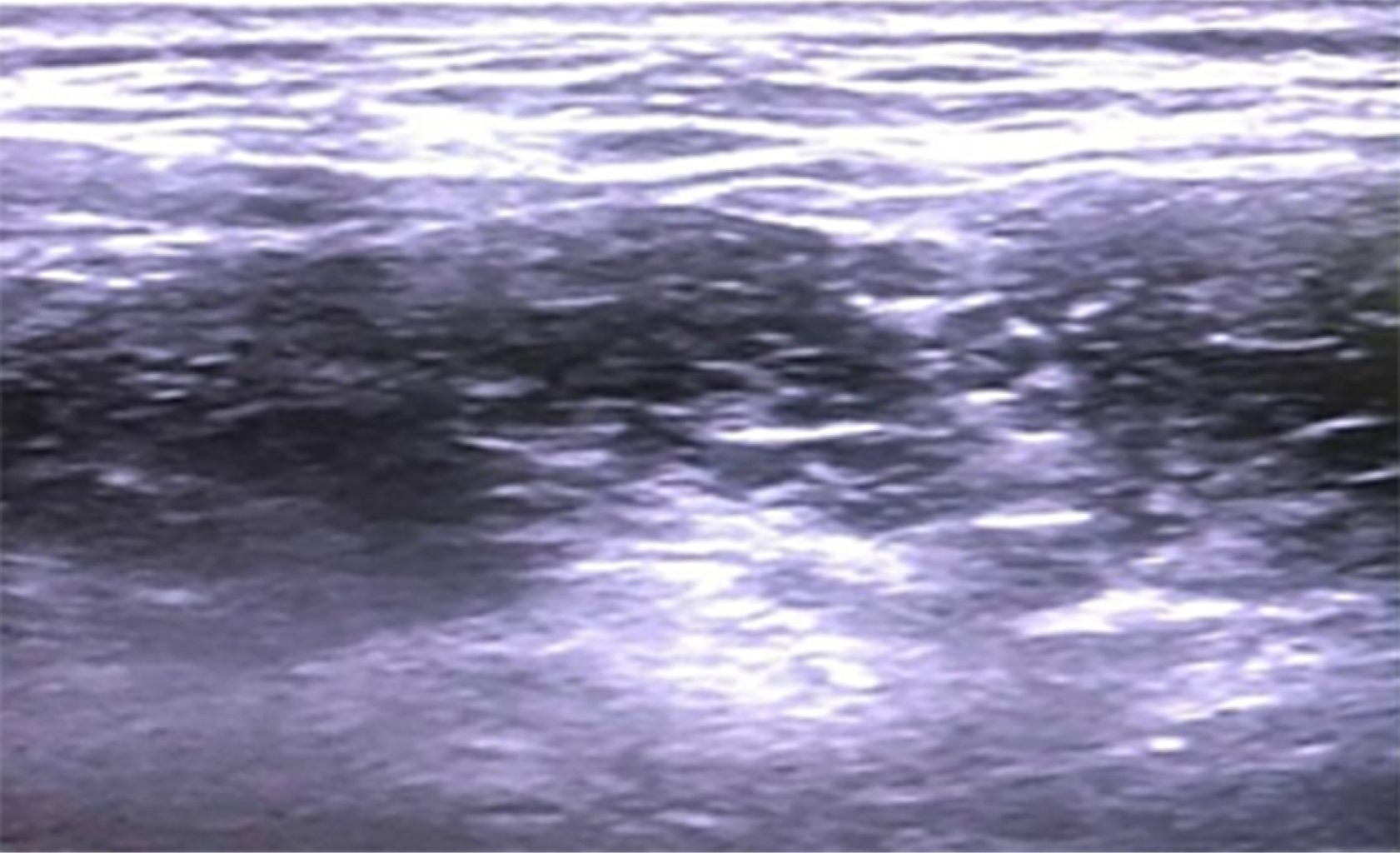 Una vez asegurada la vía aérea, con técnica estéril y bajo visión ecográfica, ultrasonido GE Logic P6 PRO, transductor lineal 12 MHz, se coloca bloqueo del plexo braquial de abordaje interescalénico con técnica en plano aguja ecogénica 21 G y se administra ropivacaína 0.5% 15 mL más dexmedetomidina 50 μg perineural (Figura 3).