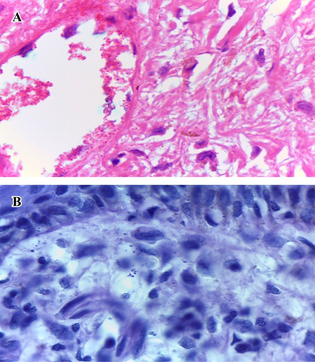 En todos los casos se realizaron biopsias de piel con técnica de sacabocado, encontrando infiltrados inflamatorios con respuesta a cuerpo extraño, así como elementos histomórficos compatibles con Histoplasma capsulatum (Figuras 4 y 5).