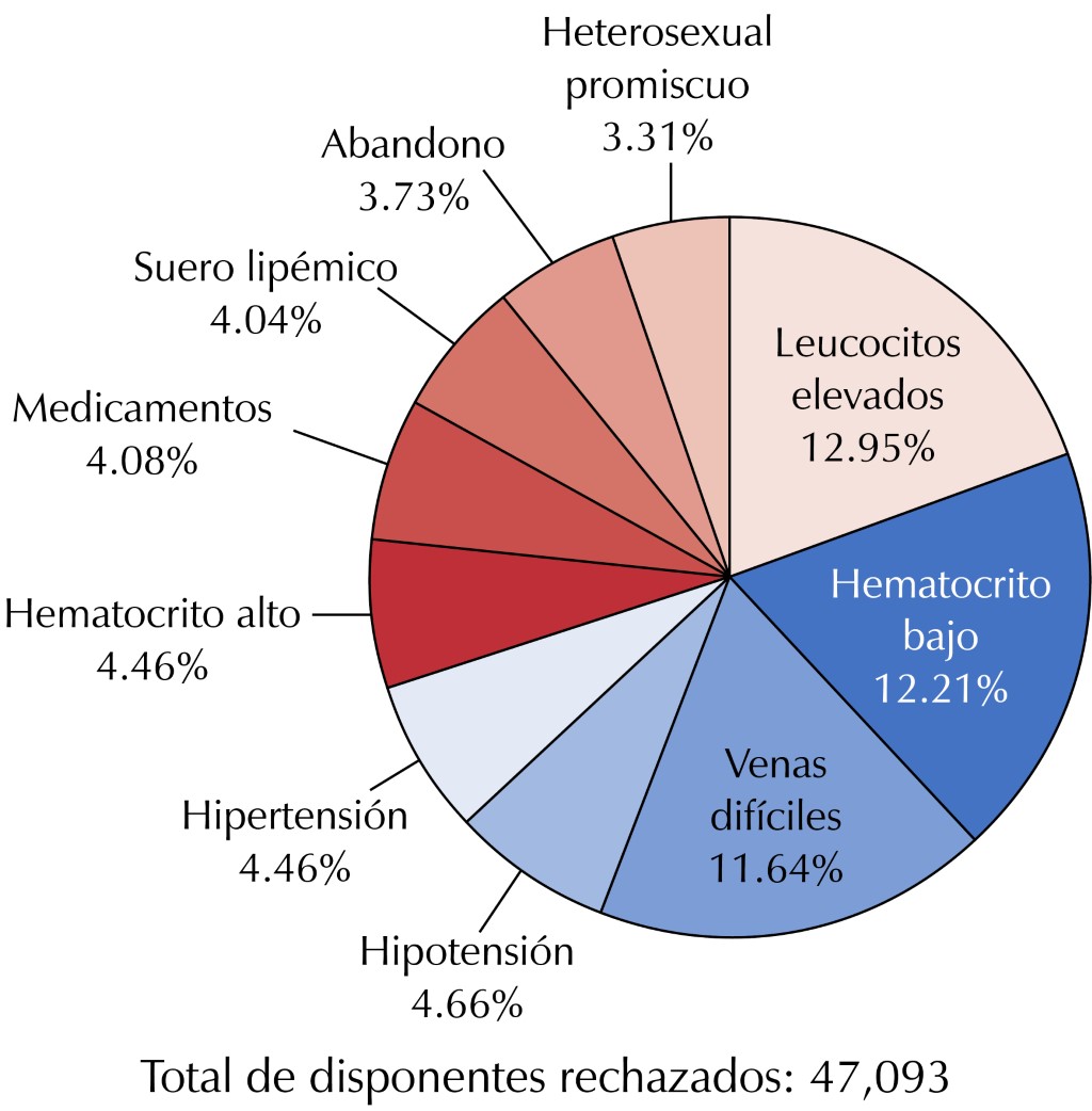 La Organización Mundial de la Salud (OMS) estimó que se recolectan más de 92 millones de donaciones de sangre anualmente a partir de 164 países diferentes en todo el mundo; de éstos, 1.6 millones fueron diferidos debido a serología positiva a virus de hepatitis B y C, virus de inmunodeficiencia humana (VIH), herpes y sífilis y al menos 13 millones fueron diferidos por presentar riesgo de transmisión infecciosa, alguna enfermedad preexistente y/o anemia.3