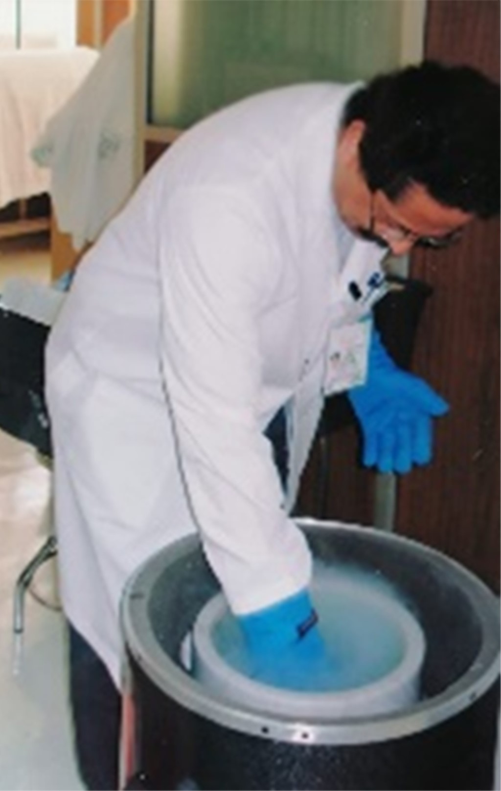 En el Banco Central de Sangre del CMN La Raza tuvo a su cargo, entre otras cosas, la conformación del Banco de Células Progenitoras y de Cordón Umbilical (Figura 13), tarea que llevó a cabo con gran dedicación y rigurosidad, logrando ser la primera unidad certificada a nivel nacional dentro del IMSS por ISO 9000. Años después fue también director médico Cordón Vital S.A de C.V., logrando una sinergia ética entre el banco privado y el público a través de la donación altruista de células de cordón de aquellas personas que no deseaban conservarlas para si con el programa "Dona o guarda una decisión informada". Asimismo, ideó en ese ámbito el programa de trasplante dirigido para personas de bajos recursos y sin seguridad social en el cual la institución privada otorgaría el proceso, conservación, y estudio de histocompatibilidad. Logró también para esa institución la certificación ISO 9000, se encontraba trabajando últimamente en torno a la certificación por la Asociación Americana de Bancos de Sangre (AABB).