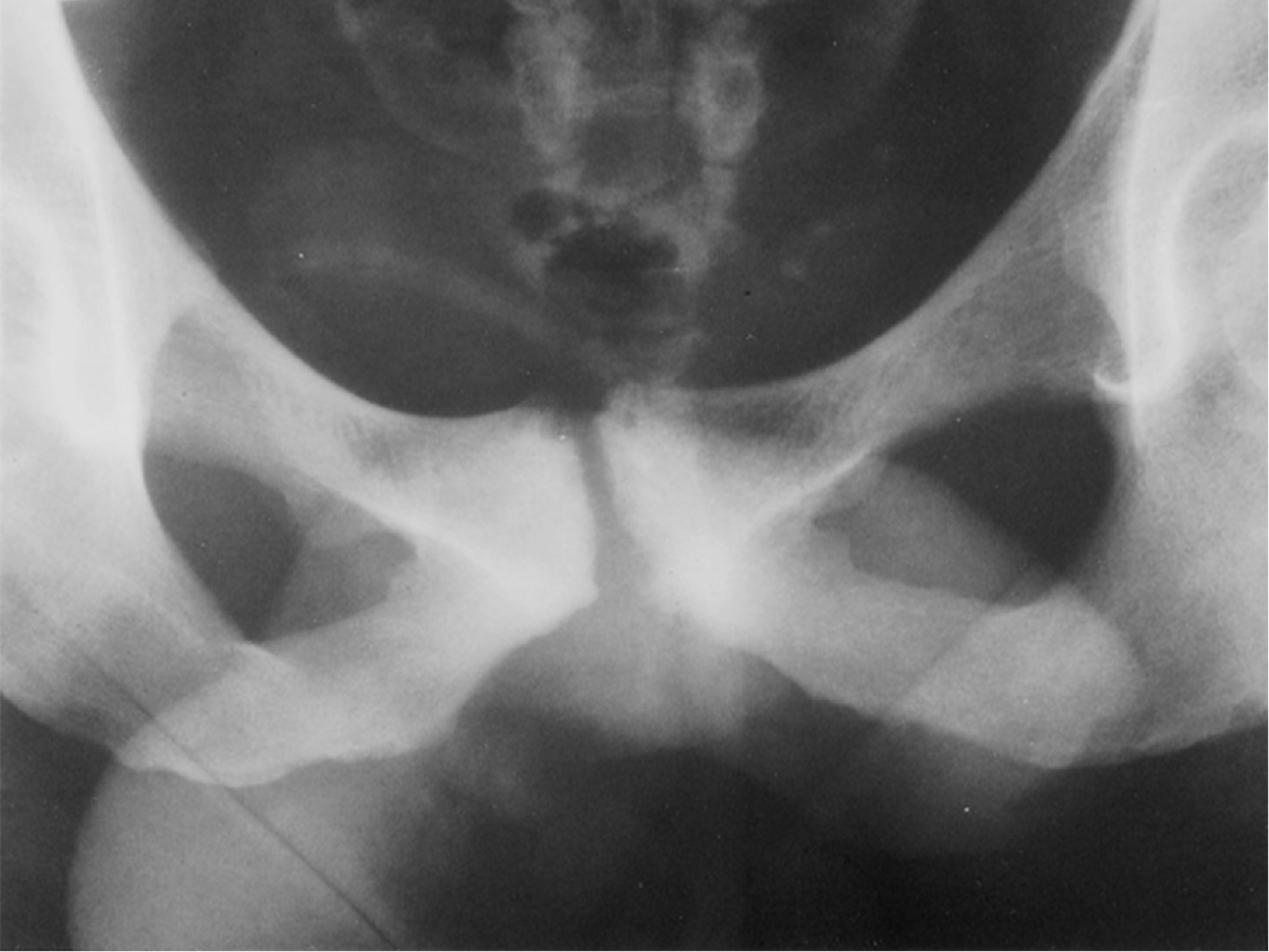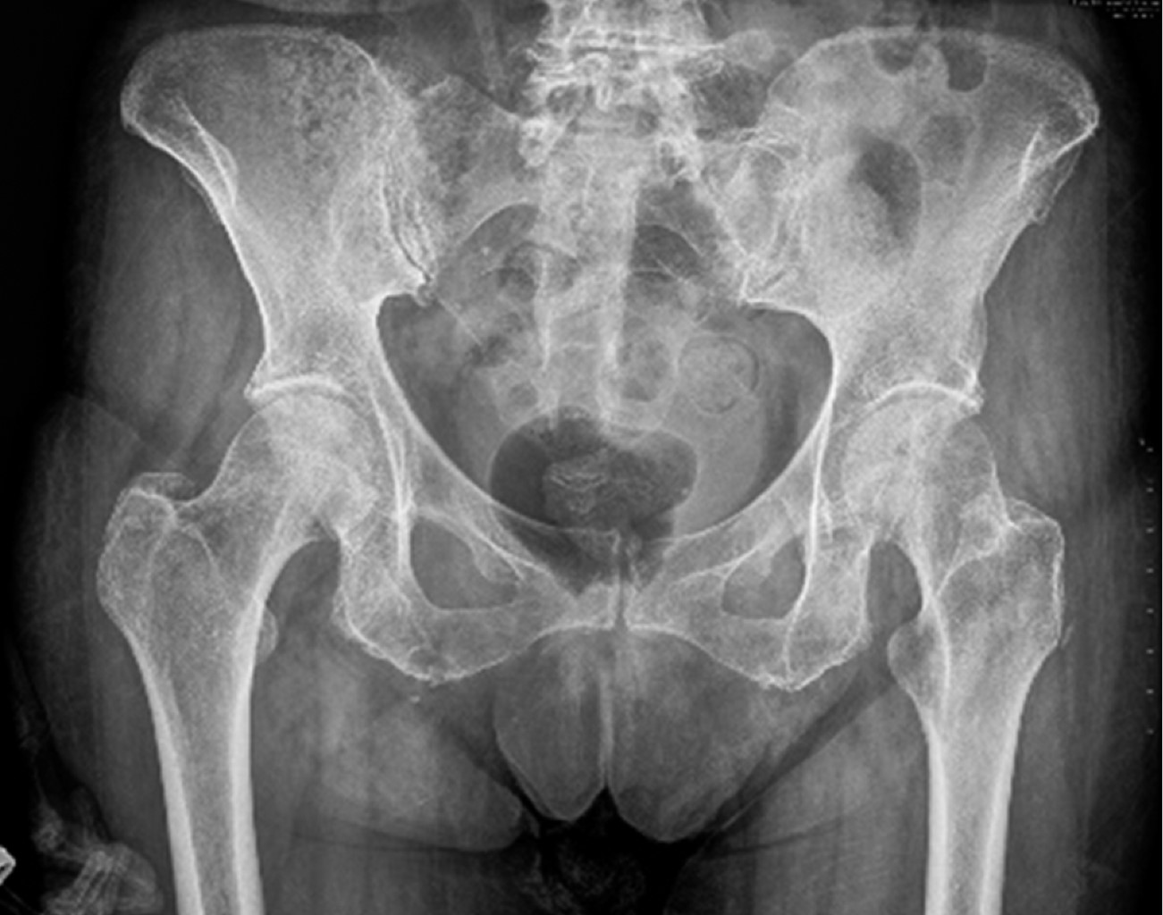 Se seleccionaron dos pacientes de 65 y 72 años. Ambas presentaron dolor en la sínfisis que les limitaba las actividades de la vida diaria. Una de ellas realizaba actividad física moderada que había tenido que cesar por completo debido a las molestias continuas. Se realizaron estudios de imagen que comenzaron con radiografías simples de pelvis (Figura 3).
