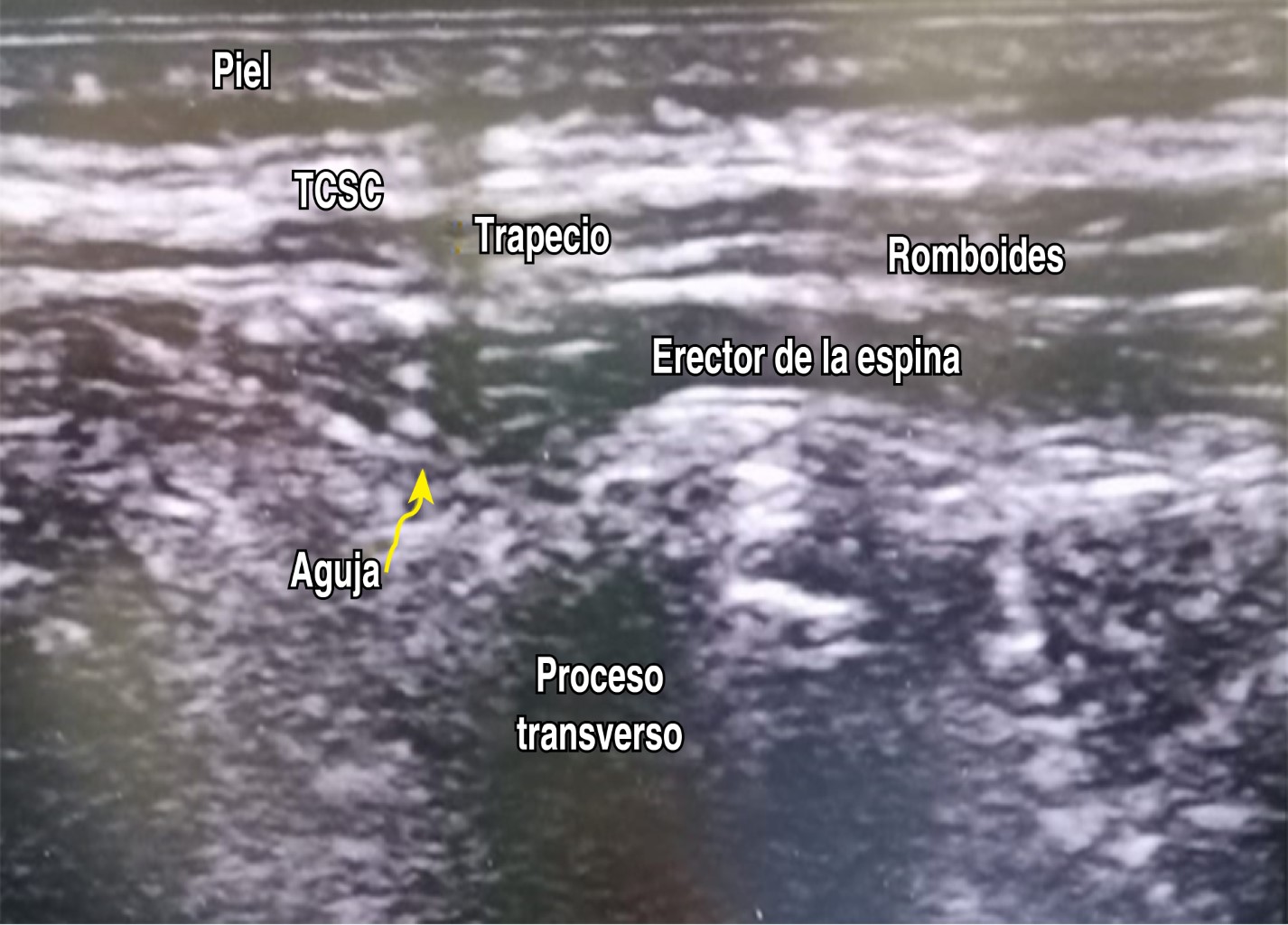 Dentro del enfoque terapéutico para el manejo de dolor, se ha descrito la neurólisis del plano del músculo erector de la espina como una alternativa para el dolor oncológico pediátrico tipo osteosarcoma(3,4). En algunos casos, la neurólisis ha sido realizada posterior al manejo sin éxito con analgesia endovenosa con paracetamol y buprenorfina, coadyuvada con ketamina, lidocaína y dexametasona, con estabilización del dolor basal, pero con requerimientos de rescates recurrentes con opioides por episodios de dolor irruptivo(3). La neurólisis del plano del músculo erector de la espina, de acuerdo con la evidencia disponible, es un método efectivo, seguro y simple para el manejo del dolor agudo en cirugía cardíaca, torácica y abdominal. Se ha informado que la incidencia de eventos adversos como toxicidad local, sangrado relacionado con los procedimientos de neurólisis, infecciones, neumotórax, entre otros, es rara(5,6).