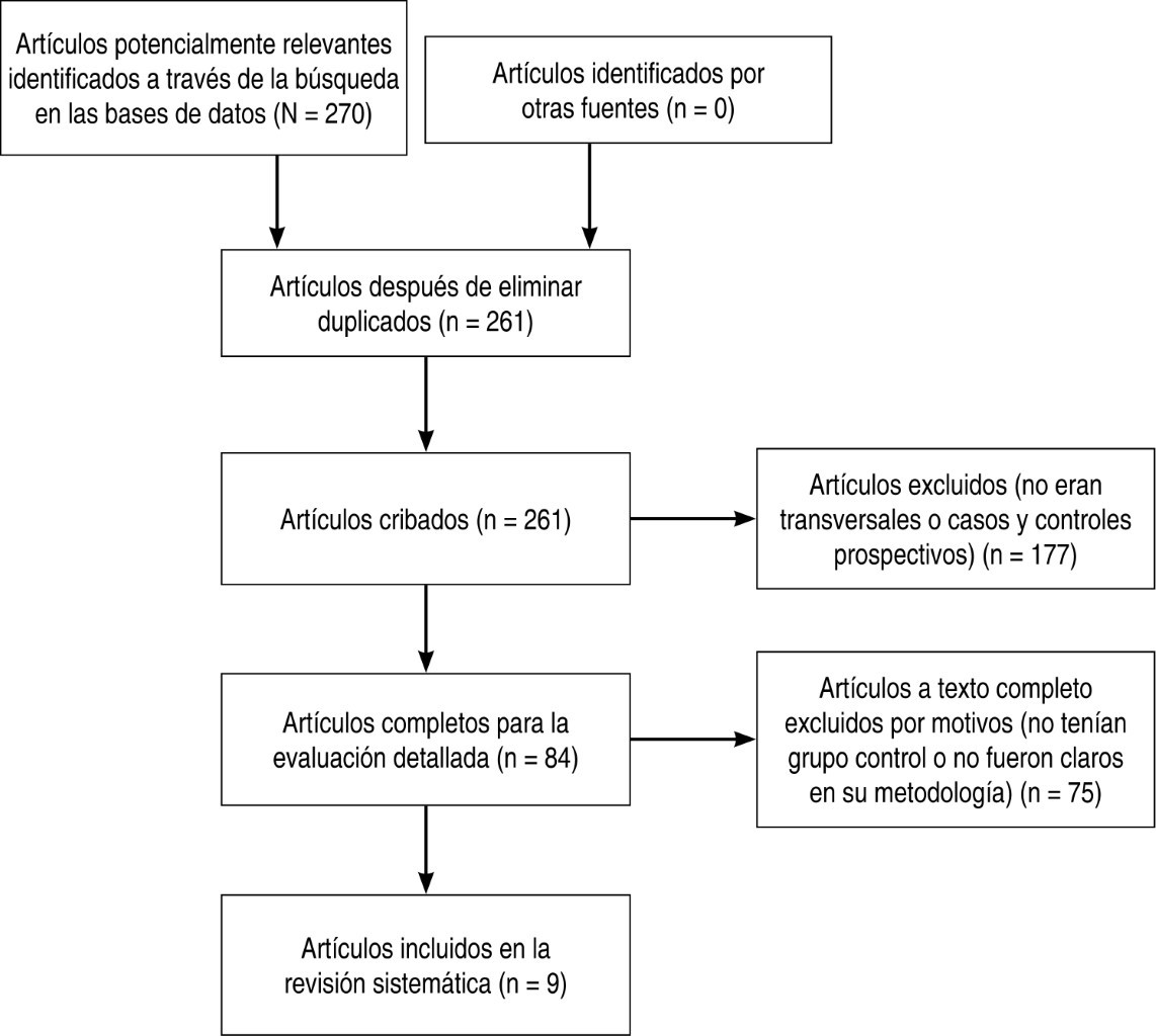 Se inspeccionaron los reportes por título y resumen, los seleccionados fueron obtenidos completos. Todas las publicaciones se recopilaron en tablas utilizando el software de Word y Excel de Microsoft Office® para el cribado inicial y la eliminación de duplicados. En caso de que se incluyera un documento que no especificara algún dato, se trató de contactar por email y/o vía telefónica a los autores. Se eliminaron aquellos artículos con las metodologías y los resultados inconstantes. Se realizo una revisión cualitativa sistemática de la literatura en la que se analizaron 270 artículos de DS y su relación con Malassezia, de los cuales se seleccionaron nueve en los que se incluyeron 1,099 pacientes en grupos comparativos (570 con piel afectada y 529 con piel sana).