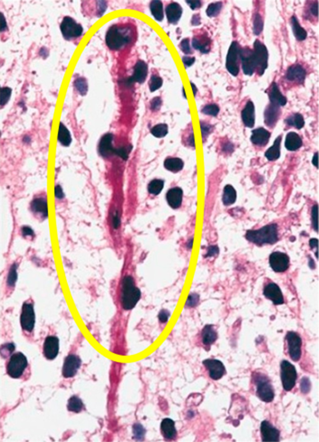 Se procedió a toma de biopsia por incisión y en el estudio histopatológico se establece que se trata de rabdomiosarcoma embrionario variedad tipo botrioide (Figura 5); por la clasificación del TNM, se consideró T2 N0 M0, etapa clínica III de riesgo intermedio.