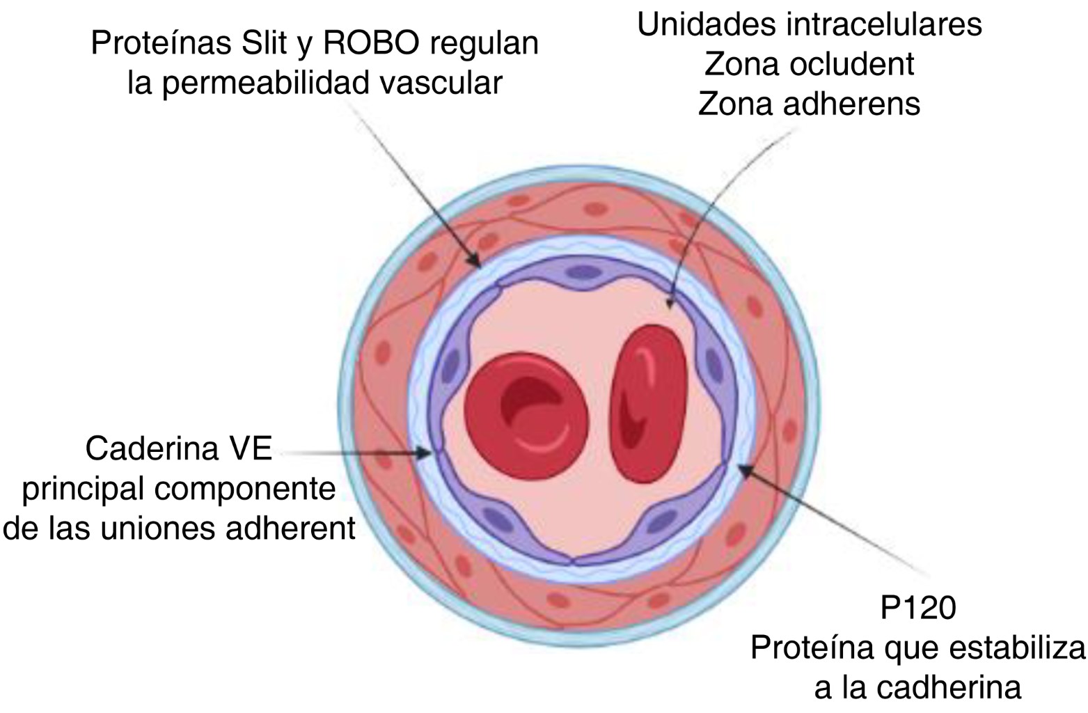 El endotelio juega un papel fundamental en la homeóstasis vascular, en el control del tono vascular y en la regulación de la respuesta inmunológica, la inflamación y la angiogénesis. Las células endoteliales presentan una gran versatilidad, ya que deben detectar y adaptarse a las necesidades de sus células vecinas y a microambientes diversos.4 La célula endotelial lleva a cabo una variedad de funciones que son específicas de su localización y, por esta razón, exhibe una considerable heterogeneidad y características que son distintas de cada lecho vascular; sin embargo, una de las funciones más dinámicas es la de barrera selectiva que controla el movimiento de fluidos, iones y otras macromoléculas entre la circulación sanguínea y los tejidos adyacentes, por medio de la regulación de los complejos de unión entre las células endoteliales.5