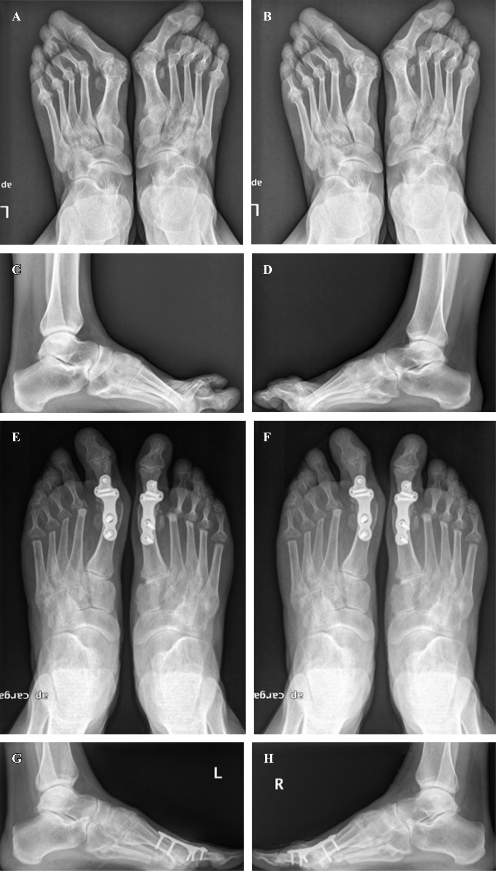 Horita M, Nishida K, Nasu Y, Nakahara R, Saiga K, Hamada M, Ozaki T. Outcome after resection arthroplasty or shortening oblique osteotomy of the lesser metatarsals combined with arthrodesis of the first metatarsophalangeal joint for severe rheumatoid forefoot deformities. J Orthop Surg (Hong Kong). 2022; 30(2): 10225536221117903. doi: 10.1177/10225536221117903.