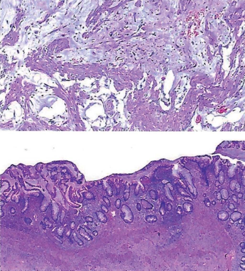 Como mencionamos con anterioridad, la forma de presentación de los tumores mucinosos del apéndice es rara e inespecífica: varía desde formas totalmente asintomáticas a cuadros de dolor abdominal en fosa iliaca derecha similares a una apendicitis aguda, masa palpable, hemorragia digestiva o síntomas urológicos tal como fue en el caso presentado. En nuestra paciente, la presentación clínica inició por un dolor abdominal en fosa iliaca derecha, que simulaba un cuadro de apendicitis aguda, por lo que el objetivo principal del tratamiento quirúrgico era realizar una apendicetomía; pero durante el transquirúrgico, se presentaron hallazgos sugestivos de una neoplasia, la cual fue confirmada posteriormente por patología como un tumor mucinoso del apéndice.