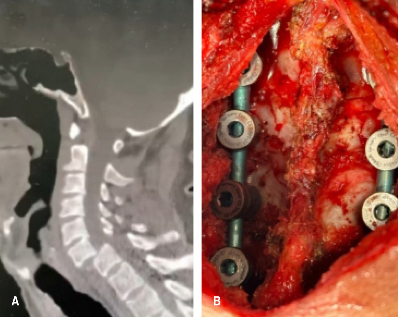 Lesiones de tipo B3: en el caso de una lesión de este tipo en un paciente con espondilitis anquilosante, se puede optar por un abordaje posterior único. En ciertos casos de estenosis del canal cervical con presencia de déficit neurológico, deberá valorarse el uso de laminectomía y artrodesis posterior o laminoplastía, con o sin artrodesis. El manejo postoperatorio con collar se realiza para control del dolor y cuidar la cicatrización
