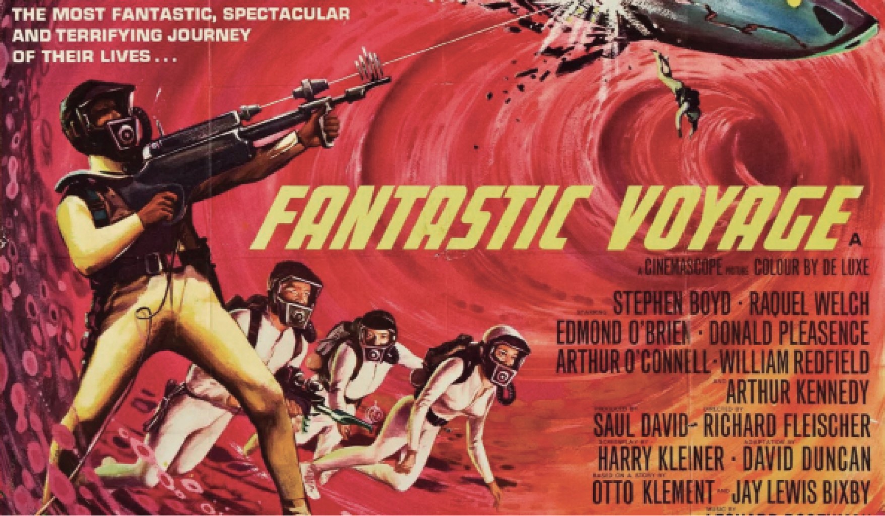 Aún recuerdo con muchos detalles una película clásica de Sci-Fi de hace seis décadas, la historia es un viaje fantástico y espectacular al espacio interior de un cuerpo humano. En un futuro no muy lejano, la medicina había evolucionado más allá de las expectativas científicas y tecnológicas. En la película Viaje Fantástico (Fantastic Voyage), el profesor Jan Benes es un científico que, con fines de espionaje y procesos de inteligencia, había creado una fórmula que permitiría reducir temporalmente el cuerpo humano a un tamaño microscópico, logrando estabilizar un revolucionario proceso de miniaturización. Cuando el profesor Benes se dirigía al Pentágono para entregar los resultados de su investigación, unos espías rusos provocan un accidente de tránsito que deja al profesor herido, y con un hematoma en el cerebro de pronóstico reservado, quedando incapacitado para continuar con su labor científica. Pero gracias a su equipo de investigadores ponen en marcha un Plan B de fuerzas combinadas de miniaturización para viajar por el cuerpo del mismo profesor Benes para operarlo desde el interior de su cuerpo, los tripulantes científicos disponen de una hora para alcanzar los tejidos dañados del cerebro y lograr curar la trombosis antes de volver a su tamaño natural.