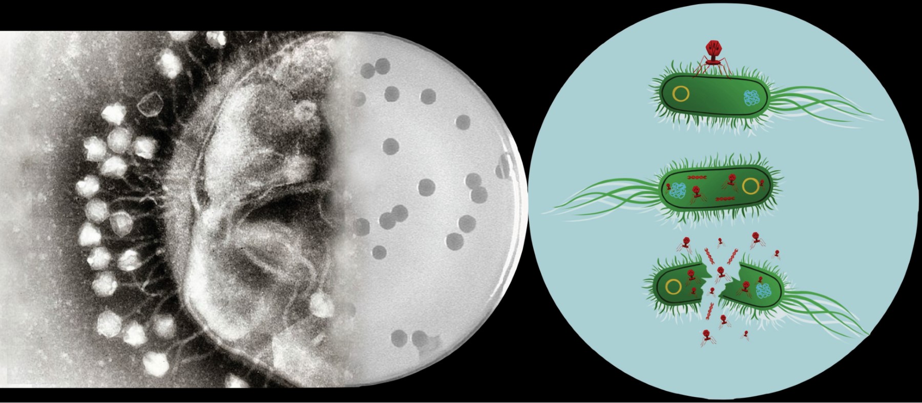 Los bacteriófagos, también conocidos como fagos, son virus que infectan y se replican dentro de bacterias y arqueas. Literalmente son virus buenos que comen bacterias malas. Los bacteriófagos son virus procariontes que infectan y se replican en las bacterias con alta especificidad contra la bacteria hospedera. Los fagos son virus que se encuentran en todo el planeta. En nuestro cuerpo forman parte del viroma y microbioma humano. Se estima que cada ser humano porta cerca de 1016 (10 000,000,000,000,000) fagos en su cuerpo. A diferencia de los virus que nos enferman, los fagos no atacan a las células humanas, sino a las bacterias. Reza un proverbio árabe "El enemigo de mi enemigo es mi amigo". Los virus bacteriófagos son nuestros aliados antibacterianos.