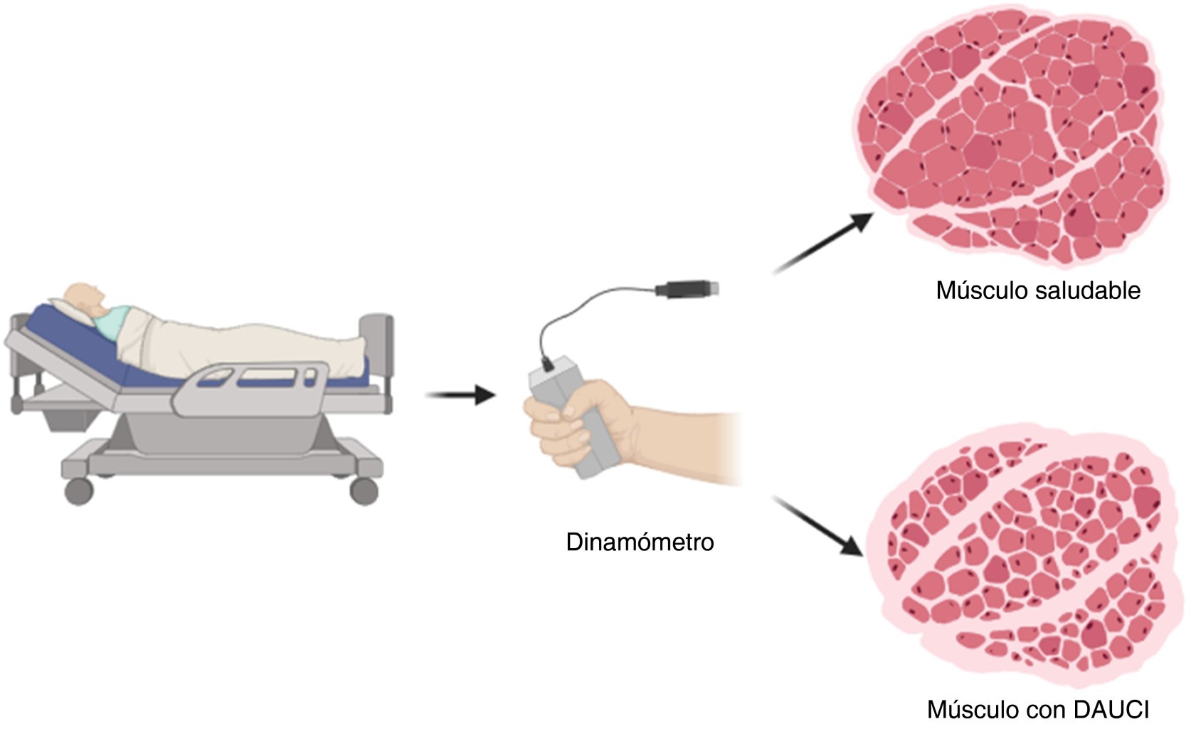 Se estima que los pacientes en la UCI pueden llegar a perder 2% diariamente de su fuerza muscular y entre 4-5% de fuerza contráctil a la semana de estancia; y esto, inevitablemente, repercutirá en su funcionalidad, desarrollo de actividades de la vida diaria y calidad de vida.4 Es por esto que la medición y el adecuado seguimiento de la fuerza muscular en estos escenarios clínicos constituye una variable importante para sospechar la presencia de DAUCI, determinar el impacto de actividades de movilización temprana y precisar la necesidad de posibles pruebas diagnósticas como la biopsia muscular o la electromiografía.