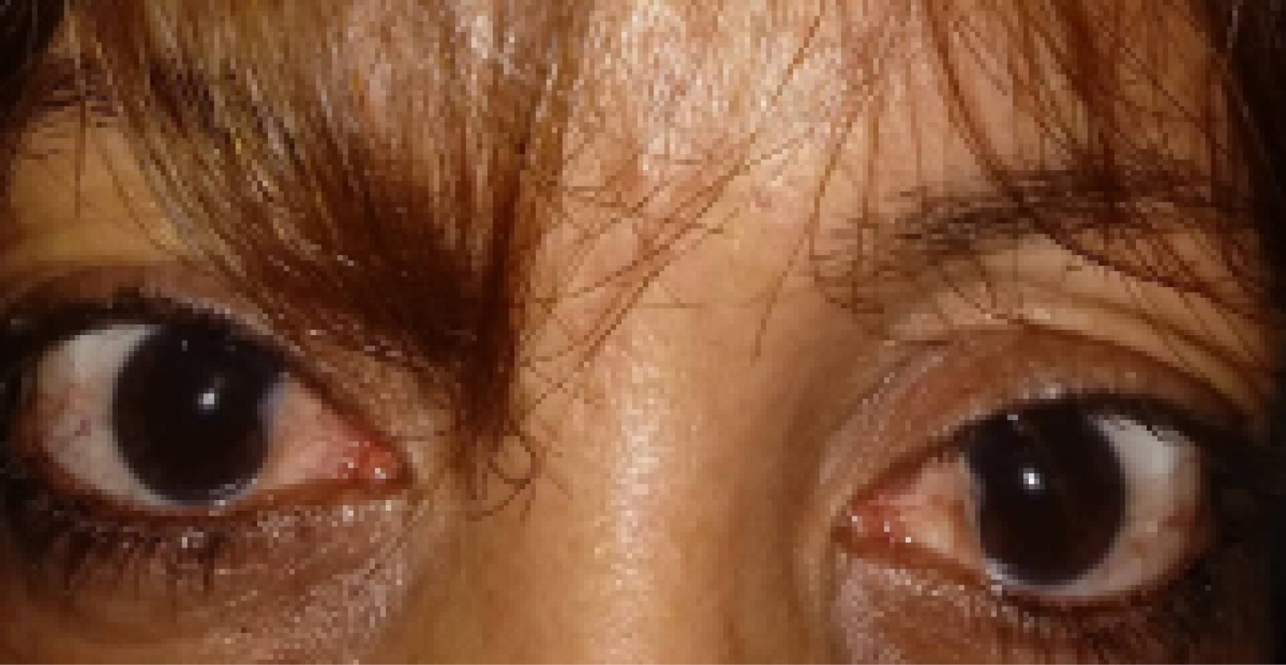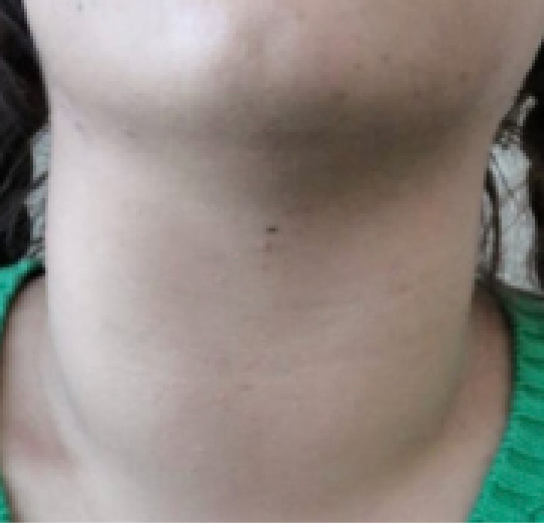 Los enfermos presentan hipermetabolismo. El cuadro clínico es caracterizado por síntomas exacerbados de tirotoxicosis más síntomas adrenérgicos. Los datos clínicos más comúnmente asociados son: fiebre, agitación, manía, psicosis, diarrea, vómitos, dolor abdominal, taquicardia sinusal, fibrilación auricular, exacerbación insuficiencia cardiaca o enfermedad arterial coronaria, labilidad emocional, temblor fino, deshidratación, piel caliente y húmeda, eritema palmar, ictericia, miopatía, debilidad y atrofia muscular, estupor, coma, hipotensión y colapso cardiovascular; ante la sospecha clínica se debe confirmar el diagnóstico. Un dato clásico es la elevación térmica, signo clínico considerado sine qua non para el diagnóstico; no obstante, una temperatura elevada no debe de ser considerada signo de un proceso grave, ya que las infecciones, incluso las de menos importancia, pueden producir una respuesta febril.6-8,11,12 Los hallazgos a la exploración física que nos orientan hacia el diagnóstico de hipertiroidismo incluyen el exoftalmos y bocio (Figuras 1 y 2).