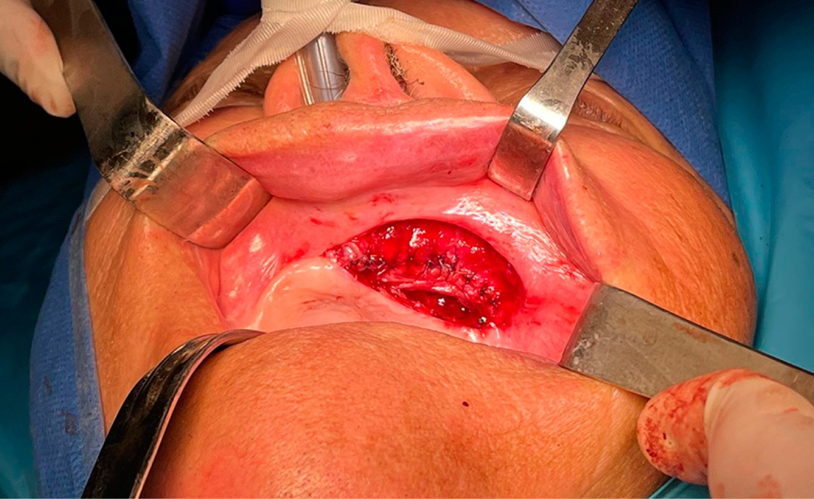 Las fístulas mandibulares pueden producirse como consecuencia de una infección, un traumatismo, una intervención quirúrgica o una irradiación. Para cerrar estos defectos se puede recurrir a una amplia variedad de técnicas. La mucormicosis es una entidad rara, causada por hongos ubicuos en el medio ambiente que colonizan la mucosa del tracto respiratorio superior cuando se inhalan las esporas en un individuo inmunodeprimido, requiere de tratamiento médico y quirúrgico, presenta grandes consecuencias en los pacientes, tanto estéticas como funcionales. El objetivo de este artículo es presentar un caso clínico de una paciente con secuelas de fístula palatina anterior, debida a maxilectomía parcial tras mucormicosis en la que se utilizó un colgajo de rotación miomucosa del músculo orbicular de los labios. Esta técnica permitió el cierre total de la fístula y una baja morbilidad del colgajo.