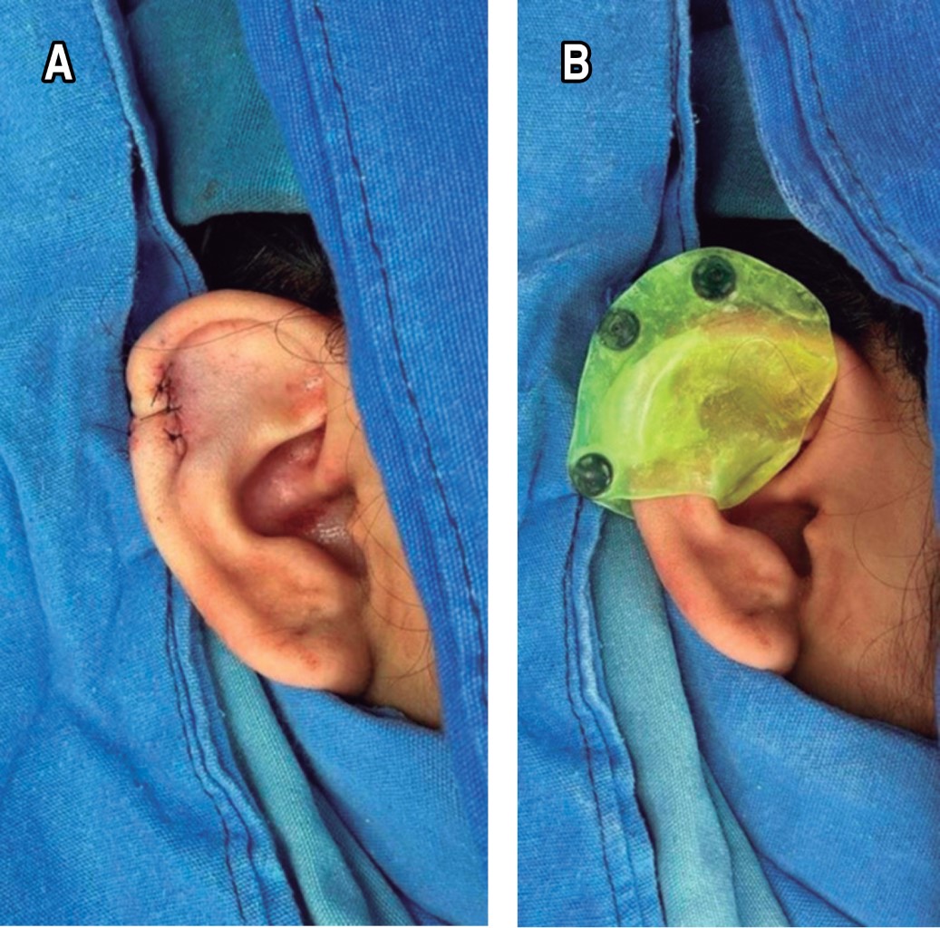 Uso de aparato de compresión personalizado para cicatriz queloide auricular