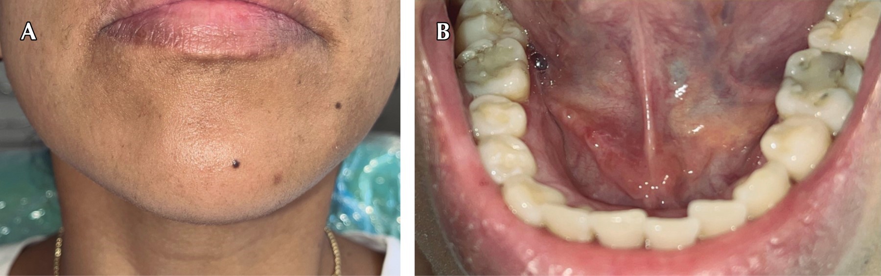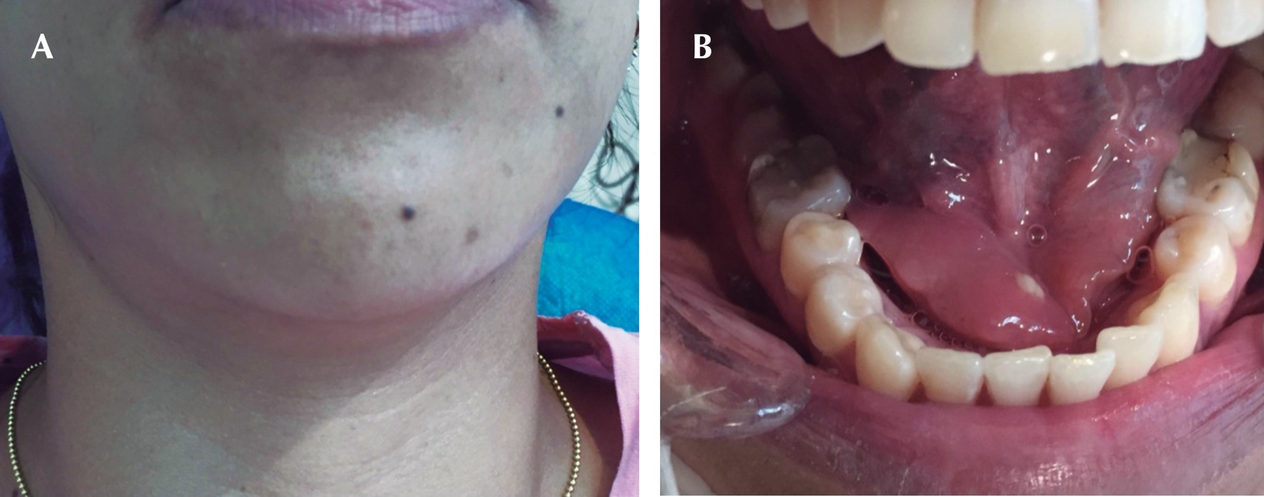La gravedad de los síntomas varía según el grado de la obstrucción y la cantidad de contrapresión resultante que se produce dentro de la glándula salival.3 Los pacientes con sialolitiasis, que afecta el conducto de una glándula salival mayor, pueden quejarse de un dolor de moderado a intenso, en especial a la hora de las comidas, esto debido al aumento en la producción de flujo salival.5 La inflamación preprandial repetida es casi patognomónica de obstrucción de las glándulas salivales.8 El dolor y la hinchazón son causados por la obstrucción del flujo salival y la acumulación de saliva proximal a la misma obstrucción.1 El estudio de Lustmann mostró que la hinchazón estaba presente en 94% de sus 245 casos de sialolitiasis, mientras que el dolor se presentó en 65.2%, la secreción de pus en 15.5% y la ausencia de síntomas en 2.4% de sus pacientes.2 Las descargas purulentas pueden acompañar a la sialolitiasis cuando existe una infección secundaria, junto con síntomas constitucionales como dolor, fiebre, deshidratación, halitosis y linfadenopatía reactiva; esto se llama sialoadenitis.4,9 En determinadas situaciones los pacientes pueden permanecer asintomáticos y su única evidencia es la presencia de una masa palpable mineralizada en el conducto o glándula salival.5