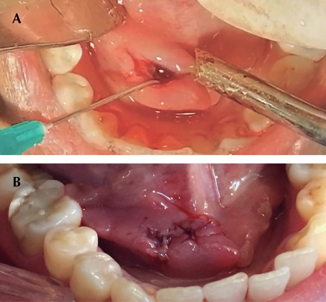 De acuerdo con la localización del sialolito, el abordaje del conducto anterior es bastante eficiente y menos dañino en relación con la sialoadenectomía, ya que se mantiene la función glandular.