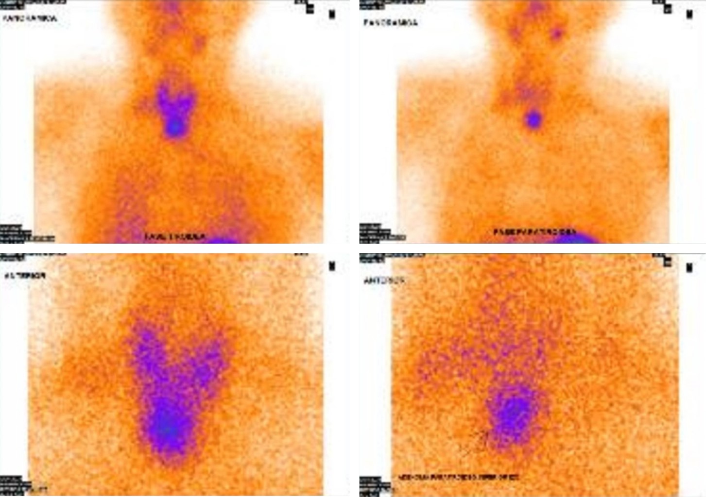 Fase tiroidea: tiroides normal, mayor captación en proyección anatómica de glándula paratiroidea izquierda.