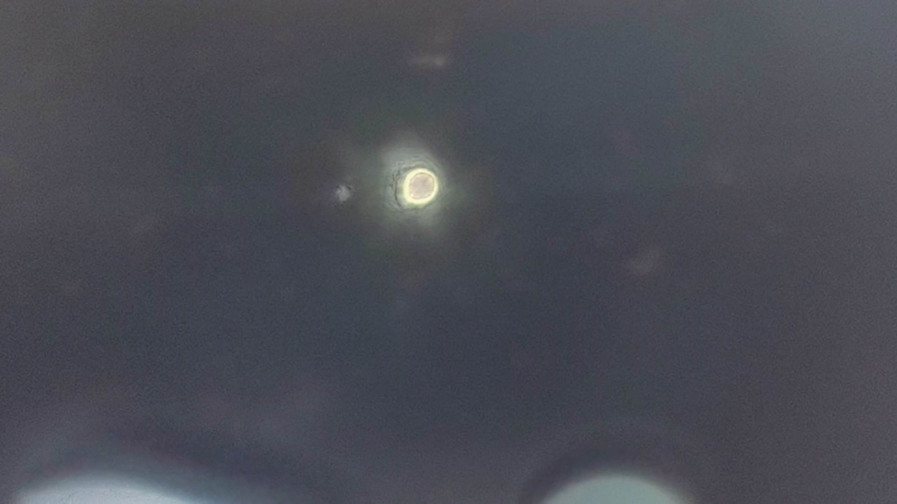 Para realizar los estudios de líquido cefalorraquídeo se obtuvieron dos tubos "secos" estériles con alrededor de 3 mL cada uno. El primer tubo se utilizó para el estudio físico-químico, y el otro se centrifugó a 2,500 rpm durante cinco minutos para hacer tinción de Gram y tinta china con el sedimento, obteniendo el siguiente resultado: muestra de aspecto turbio, leucocitosis de 2-3 por campo, eritrocitos abundantes, proteínas 60 mg/dL, glucosa 151 mg/dL y DHL 13.4 UI. Para la lectura de la tinta china se colocó en un portaobjetos una gota del sedimento con una micropipeta con punta desechable estéril y una gota de tinta china, se homogenizó con el borde de un cubreobjetos con el cual se cubrió la preparación y se observó en microscopio óptico (MO), pudiendo visualizar las levaduras de Cryptococcus spp. (Figura 2).
