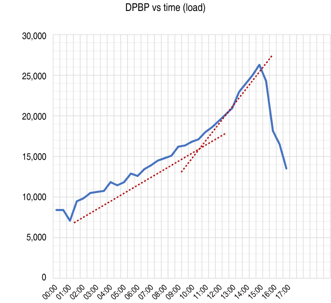 Material y métodos: estudio descriptivo, prospectivo, analítico, no aleatorizado, se incluyeron pacientes con cardiopatía que realizaron prueba máxima de ejercicio cardiopulmonar. Se obtuvo el DP y se graficó en función del tiempo (cada minuto) para establecer mediante trazado de rectas el PQDP. Se hizo la correlación con los umbrales ventilatorios obtenidos del análisis de gases del CPET, por método de los equivalentes ventilatorios.