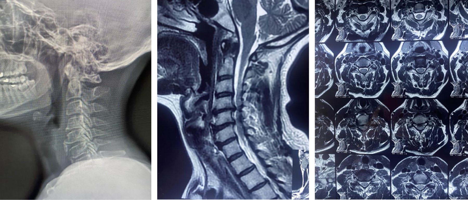 El SMC también puede manifestarse tras fracturas de la columna cervical, con o sin luxación, como consecuencia de una hernia discal aguda. Esta presentación multifacética subraya las diversas formas en que la médula espinal puede verse comprometida en escenarios traumáticos. Anteriormente, la presencia de osteofitos, así como de hernias discales calcificadas o no calcificadas, puede contribuir al estrechamiento del canal espinal en áreas focales específicas. Este síndrome frecuentemente asociado con incidentes traumáticos, cuando coexiste con un accidente cerebrovascular reciente introduce un nivel de rareza que exige atención y exploración.