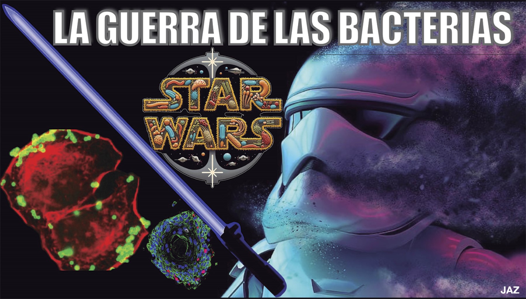 Las bacterias poseen diversos factores de virulencia para invadir y evadir mecanismos de defensa. Las invasinas o factores de invasión son proteínas que ayudan a las bacterias a penetrar en las células del huésped para poder diseminarse por los tejidos. Las bacterias en su biofilm, a manera de un tanque de guerra, lograrán invadir epitelios y tejidos conectivos, y con factores de evasión lograrán evadir a células de defensa hasta llegar a lechos vasculares. Los microorganismos logran evadir las defensas del sistema inmune a través de una inmunoevasión, Las bacterias evaden al sistema inmune escondiéndose dentro de células dañadas, y en los tejidos afectados producirán interferencia con las señales de comunicación celular para bloquear cualquier respuesta para la presentación de antígenos. Las bacterias al destruir elementos del sistema inmune se apoderan de estructuras tácticas de órganos vitales. En este editorial se usarán algunas coincidencias entre la saga de Star Wars, La Guerra de las Galaxias, y La Guerra de las Bacterias.