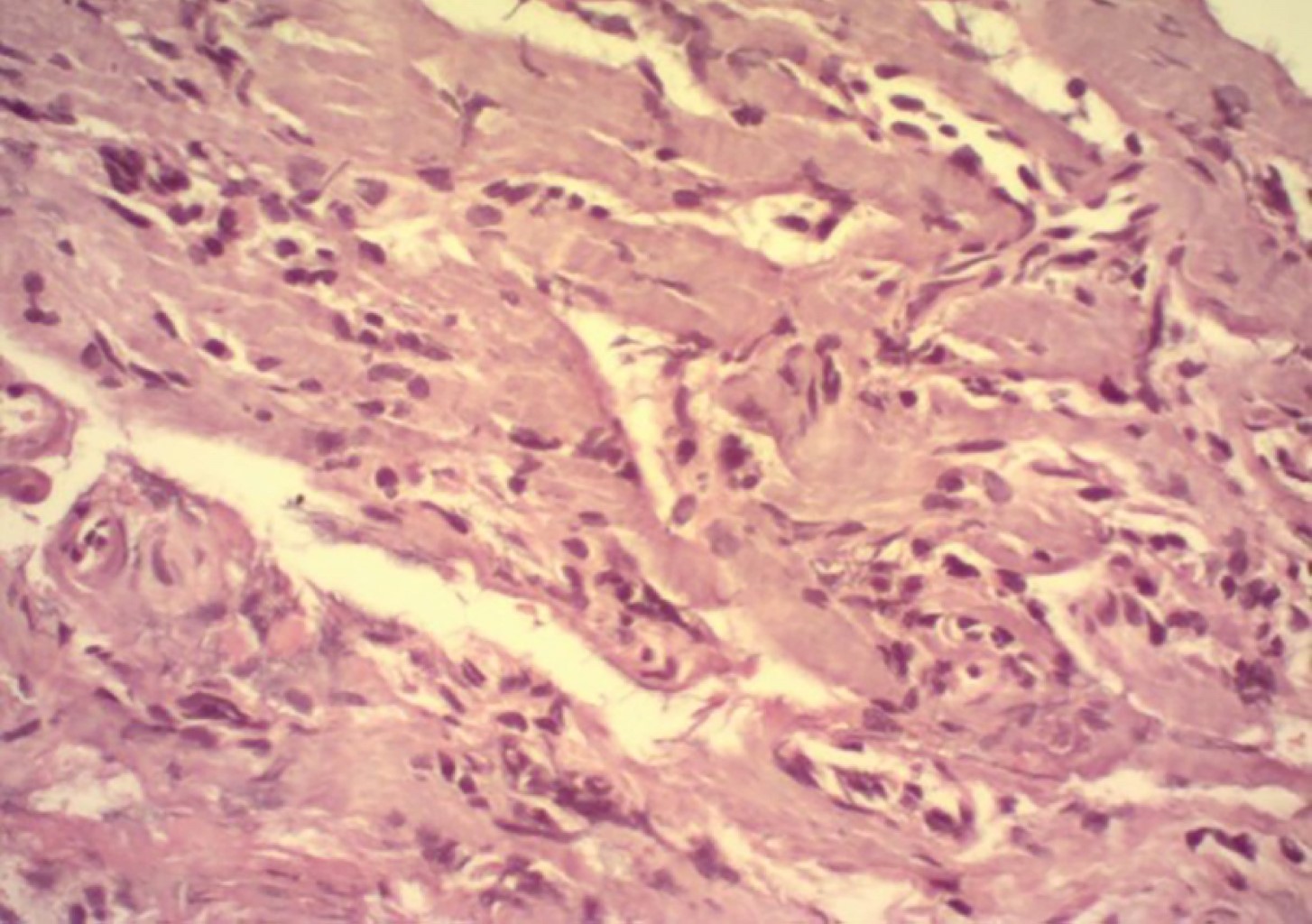 El diagnóstico es clínico, complementado por estudios de imagen y se realiza por exclusión de afecciones como trastornos de tiroides o paratiroides, cáncer, linfoma, trastornos autoinmunes y otros síndromes con osteólisis masiva,7 pero principalmente se da al blanco mediante el estudio histopatológico que reporta proliferación anormal de linfáticos no neoplásicos, vasculares o tejido conectivo fibroso hiperplásico sin atipia celular, infiltración de células inflamatorias u osteoclastos, es decir, la osteólisis masiva se acompaña de angiogénesis y linfangiomatosis, con proliferación de estructuras vasculares benignas y destrucción de matriz ósea3 como el reporte histopatológico de nuestro caso. Dentro de la literatura se encontró que Heffez estableció un conjunto de criterios de diagnóstico para GSD: 1) biopsia que muestra tejido angiomatoso o tejido conectivo fibroso; 2) ausencia de atipia celular; 3) mínima o nula respuesta osteoblástica y ausencia de calcificaciones distróficas; 4) evidencia de progreso de resorción ósea local; 5) la lesión no es ulcerosa y no provoca expansión cortical; 6) ausencia de afectación visceral; 7) patrón radiográfico osteolítico y 8) etiología hereditaria, metabólica, neoplásica, inmunológica e infecciosa negativa. Teniendo en cuenta que los aspectos comórbidos del paciente pudieron ser un factor de riesgo para su presentación.