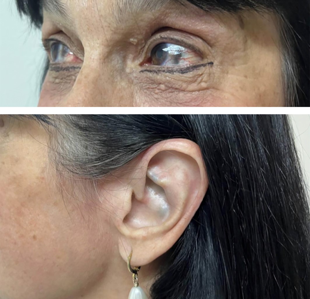 Presentamos un caso nuevo de ocronosis en México y artropatía ocronótica en una paciente de 67 años.