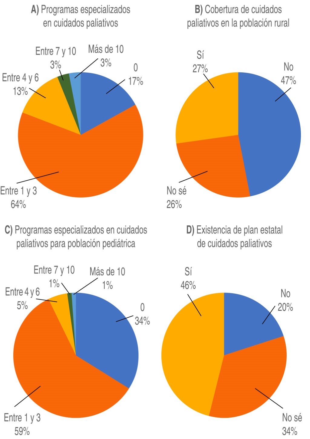 Que sean anestesiólogos, algólogos u oncólogos los médicos que atienden a estos pacientes, puede explicarse por la evolución que en México tuvieron las clínicas del dolor hacia unidades de CP, centros frecuentemente lideradas por estos especialistas; la presencia de geriatras puede explicarse por la reciente inclusión de pacientes con enfermedades crónicas no curables y el incremento de adultos mayores con frágiles y multimórbidos a los CP, cifras que contrastan con el reducido número de pediatras capacitados para atender a la población infantil con estas necesidades.