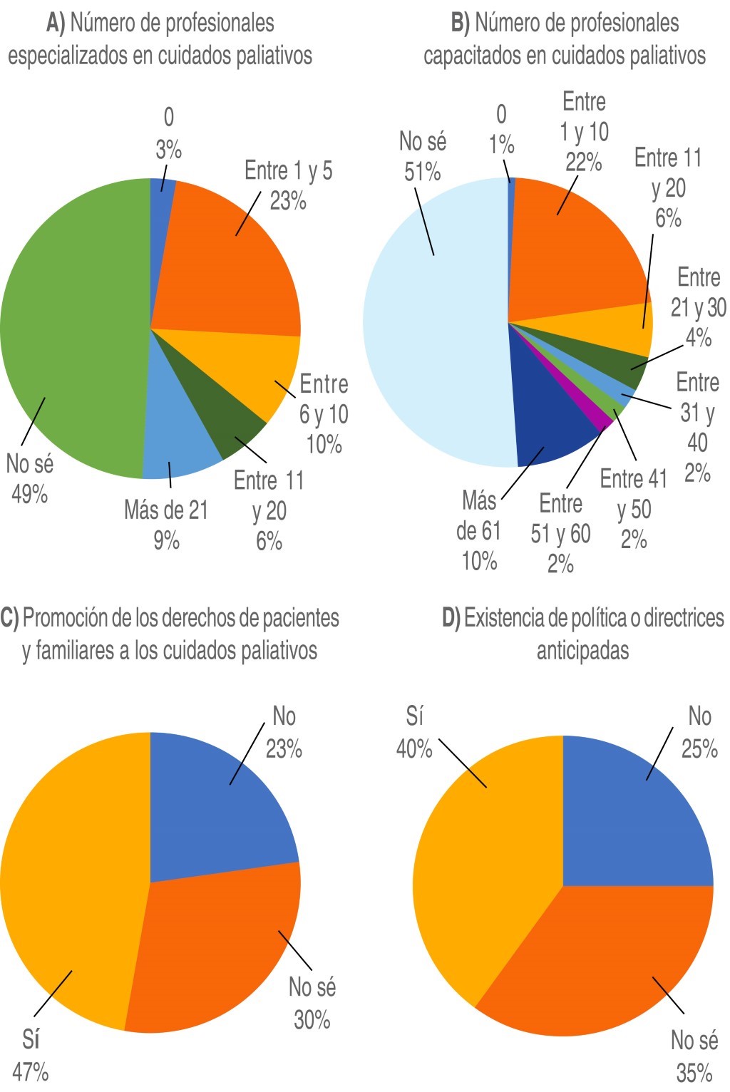 La educación y capacitación del personal sanitario es determinante para brindar una atención paliativa de calidad(16). Preocupa el reducido número de egresados de facultades de medicina y enfermería del país que durante la licenciatura reciben capacitación para brindar estos servicios; la misma tendencia sigue la carencia de personal especializado, destacando el elevado número de encuestados que ignora su existencia en su entidad.