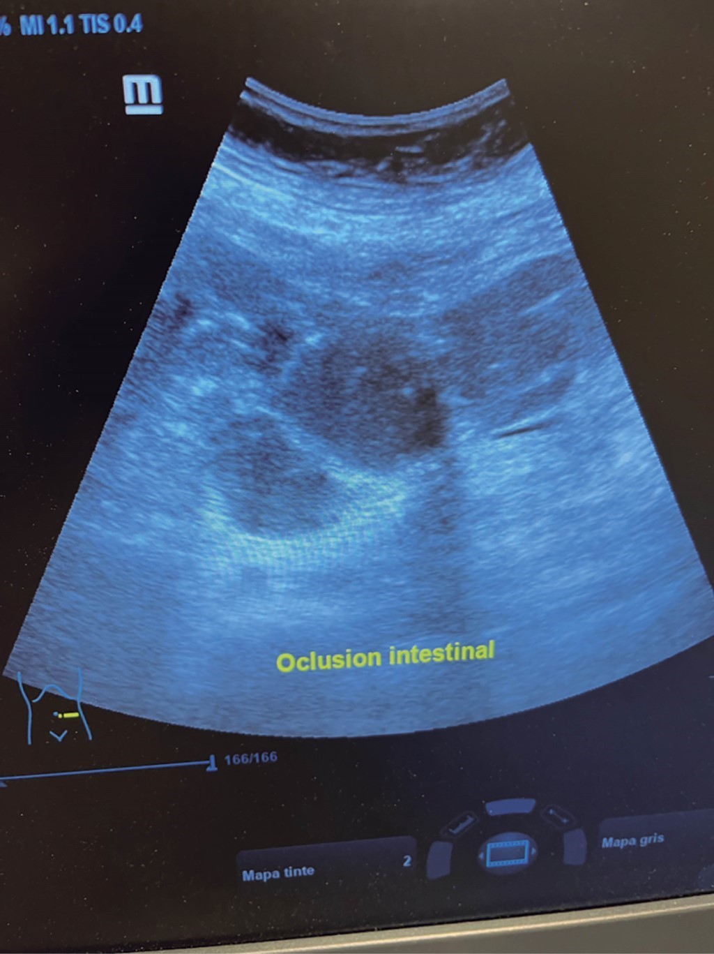 El cirujano general aborda particularmente problemas clínicos que incluyen el aparato digestivo, el cuello, la pared abdominal y los trastornos del sistema circulatorio y el tórax. Un artículo publicado en 2008, por Lindelius,15 demostró que la implementación del ultrasonido por parte del cirujano general en casos de dolor abdominal agudo incrementó en 7.9% la precisión diagnóstica. En la consulta cotidiana de la especialidad, incorporar el rastreo sonográfico al área explorada agrega minutos al examen clínico que aportan datos de notable valor por la objetividad y precisión. El abdomen suele ser el sitio que los cirujanos generales exploramos con más frecuencia. Es posible en una consulta cotidiana hacer todo el protocolo de ultrasonido de abdomen superior en minutos, que incluye ambos cuadrantes superiores y los flancos, pudiendo observar el hígado, la vesícula y los conductos biliares, ambos riñones, el bazo, parte del páncreas y, con ayuda del Doppler color, los principales vasos de la región como la vena cava inferior, la aorta abdominal, la vena porta, los vasos esplénicos y la arteria hepática. Puede haber limitantes como el contenido gástrico, el nivel de llenado de la vesícula biliar o la constitución del paciente y su capacidad de cooperar con el estudio. Pero con la práctica cotidiana, se adquieren las destrezas y el refinamiento suficientes para lograr, con la experiencia acumulada, producir imágenes de relevancia diagnostica inmediata. En la fase de entrenamiento, contrastar nuestros hallazgos con información disponible en la red, con los colegas imagenólogos, o cirujanos ya experimentados en ecografía, permitirá la retroalimentación y la tutoría esenciales de toda curva de aprendizaje. Tradicionalmente se consideraba que aquellos órganos que contienen una mezcla de líquido y gas (intestino, estómago) no son valorables por ultrasonido, el gas produce un efecto rarefacción, ya que no comprime las ondas como un tejido solido o un medio líquido, la señales entonces se dispersan impidiendo que regresen como ecos y permitan al procesador formar una imagen congruente con el órgano explorado. Sin embargo, cuando esta condición cambia como consecuencia de un estado patológico, es posible identificar el contenido intestinal o el gástrico y darnos una idea más aproximada de lo que realmente está ocurriendo en ese abdomen. Podemos, por ejemplo, saber si un estómago está lleno de líquido, o si el intestino contiene residuo sólido, líquido o gaseoso. Los equipos actuales pueden incluso ver en detalle la pared intestinal cuando ésta esté dilatada. Se puede distinguir cuando el colon está ocupado de líquido a nivel del flanco izquierdo como podría ser en una colitis amebiana o en una oclusión intestinal,16 donde se observa dilatación del intestino delgado ≥ 25 mm, el peristaltismo anormal, la presencia de líquido libre intraperitoneal y el edema de la pared intestinal (Figura 2). En casos de dolor abdominal agudo, el ultrasonido puede, en forma inmediata, permitir diagnósticos diferenciales como el hallazgo de una dilatación pielocalicial por nefrolitiasis (Figura 3), o un aneurisma de la aorta abdominal (Figura 4). Un estudio prospectivo realizado en Irvine, California,17 encontró que la a capacidad diagnóstica del médico de primer contacto practicando el ultrasonido para detectar una colelitiasis tiene una especificidad de 87% y una sensibilidad de 82%, mientras que la prueba de ultrasonografía realizada por radiología tuvo sensibilidad de 83% y una especificidad de 86%. Es decir, que, ahorrando tiempo al paciente, el diagnóstico de colelitiasis es factible agregando unos minutos al examen físico inicial. En casos de apendicitis, el método diagnostico considerado como el estándar de oro es la tomografía axial computarizada (TAC). Sin embargo, tiene inconvenientes como su disponibilidad, su costo, el riesgo de radiación en niños y pacientes embarazadas. En tales situaciones, sobre todo en niños, sexo femenino o pacientes delgados, el ultrasonido es una poderosa herramienta que complementa el examen clínico inicial. Las ventajas del ultrasonido frente a la tomografía serian su ubicuidad (ya está en la sala de emergencias), el bajo costo, la ausencia de radiación y el diagnóstico diferencial con causas ginecológicas o genitourinarias de dolor. En apendicitis, la sensibilidad y especificidad de la TAC es de 99.4% y 80.0%, respectivamente. Para el ultrasonido, la sensibilidad diagnóstica es de 83% y la especificidad de 90%. La tasa de apendicectomía negativa es ligeramente mayor en el grupo de TAC que en el del ultrasonido, es decir, 7.1% (3/42) (TAC) en comparación con 4.67% (5/107) (ultrasonido). Hay que recalcar que el ultrasonido es operador dependiente. La experiencia y la calidad del equipo juegan un papel importante.18 La apendicitis tiene varios hallazgos característicos, como la pared edematosa y el aumento de grosor general. Se toman para criterios de positividad una estructura tubular aperistáltica no compresible que mide más de 6 mm de diámetro en el cuadrante inferior derecho (Figura 5).19-21