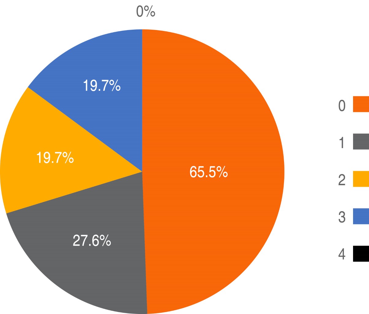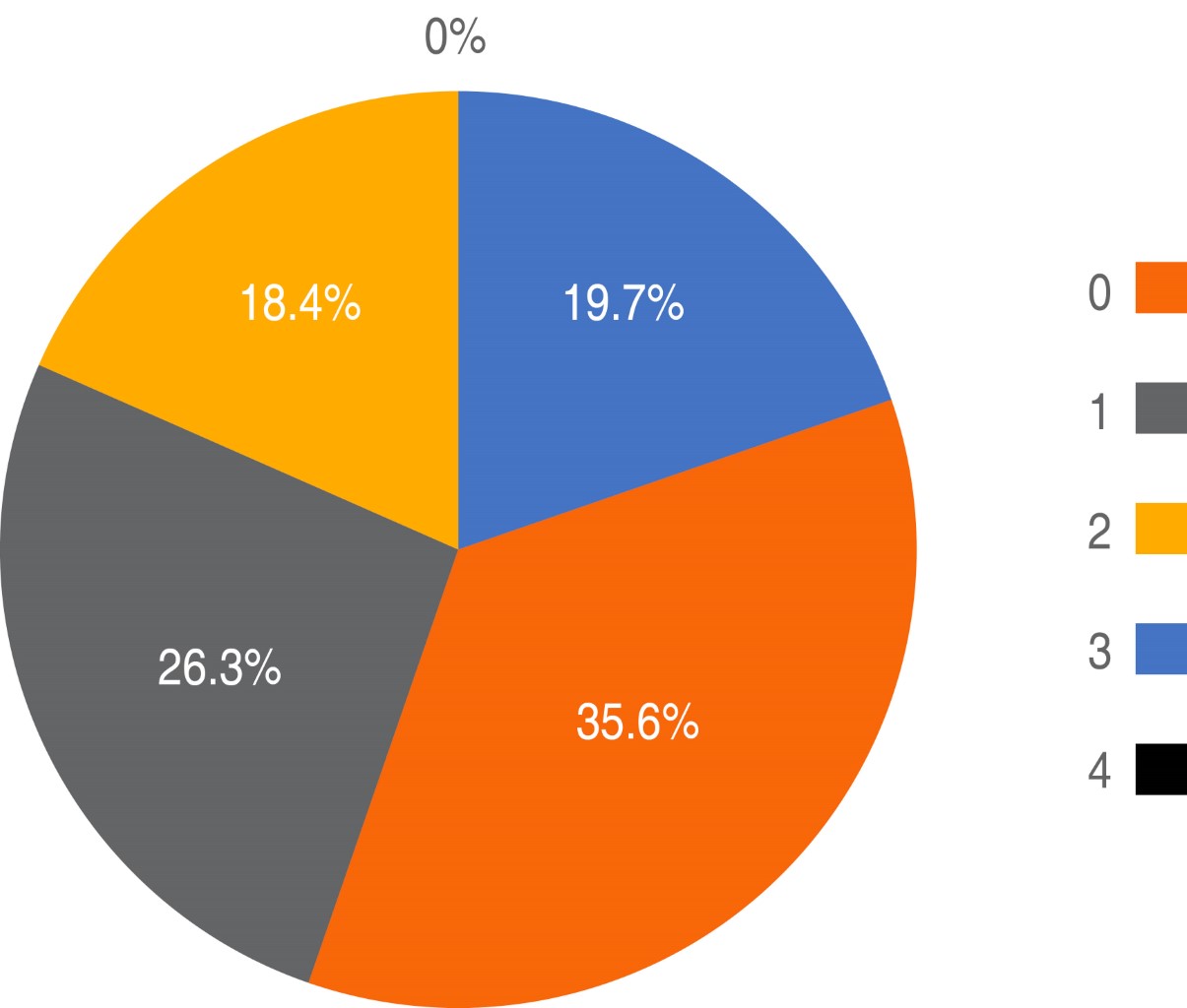 Diecinueve punto siete por ciento de los pacientes sin diagnóstico de EP incluidos en este estudio no identificaron ninguna fragancia, 35.6% logró identificar al menos una, mientras que 26.3% logró identificar dos, 18.4% identificó tres fragancias y ninguno identificó las cuatro esencias (Figura 2); mientras que en el estudio realizado en el año 2022,9 los participantes presentaron un mejor desempeño en la prueba: 8% de los pacientes no identificaron ninguna fragancia, 19% logró reconoce al menos una, 48% dos fragancias, 23% nombró tres fragancias y 2% consiguió nombrar todos los olores.