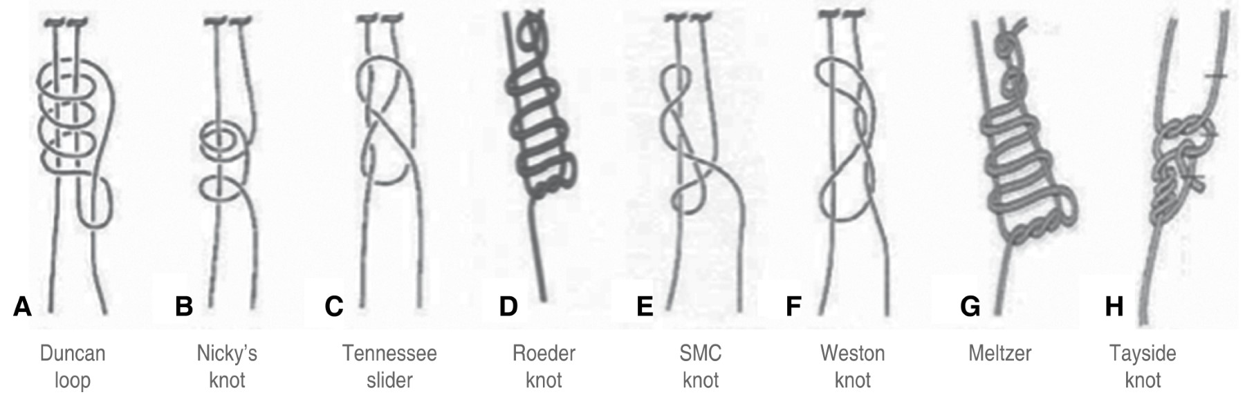Actualmente la cirugía laparoscópica es el abordaje más común para el tratamiento de muchas enfermedades quirúrgicas, abdominales y ginecológicas. A pesar de esto, el atado de suturas en la cavidad sigue siendo un gran desafío.1,2 Existen diferentes técnicas de nudos laparoscópicos dentro de los cuales se clasifican en general en intra o extracorpóreos.3 Un nudo debe asegurar la aproximación de los tejidos, ser sencillo, rápido, resistente y seguro. Hoy en día existen diferentes tipos de nudos, pero pocos cuentan con pruebas de su resistencia.4,5 Existen numerosos nudos extracorpóreos siendo el más popularizado y del cual hay más información el Roeder. Otros muy comúnmente usados son el Meltzer, Bueb o Weston (Figura 1), y cada uno requiere ciertas habilidades. Pero muchos nudos y/o modificaciones no cuentan con información sobre su resistencia. De hecho en algunos casos se considera al nudo Roeder como el menos seguro.1,4,5 En el servicio de cirugía general dentro del Hospital Juárez de México el Dr. Javier García Álvarez jefe de posgrado del servicio de cirugía general alrededor del año 2000, pionero y entusiasta de la cirugía laparoscópica diseñó un nudo más fácil de elaborar, corredizo y que no requería de más anudados el cual bautizó como nudo H. Juárez. Dicho nudo fue enseñado de generación en generación de residentes y en la actualidad muchos cirujanos egresados lo realizan en su práctica diaria.