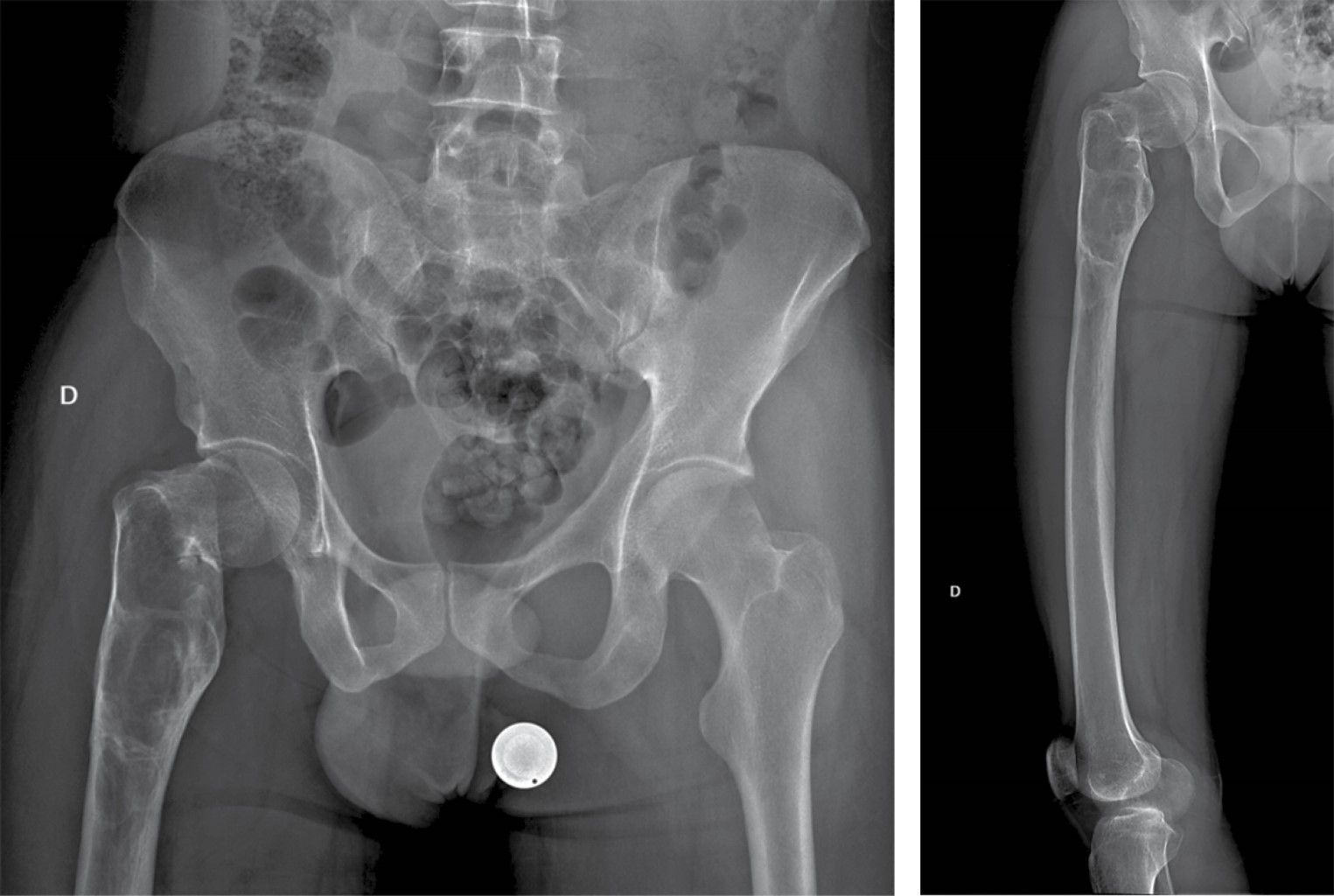 El fémur proximal es una de las localizaciones más frecuentes de tumores benignos y lesiones displásicas en niños y adolescentes, con una edad media de ocho años en la presentación inicial. Más de 75% de los casos de displasia fibrosa (DF) se presentarán antes de los 30 años.1 Las tumoraciones benignas más frecuentes incluyen el quiste óseo simple, quiste óseo aneurismático, fibroma no osificante y la DF, siendo las fracturas, a menudo, el primer síntoma.1,2 Las complicaciones más comunes de estas fracturas en el fémur proximal incluyen deformidad en varo, la discrepancia de extremidades pélvicas y la necrosis avascular.2