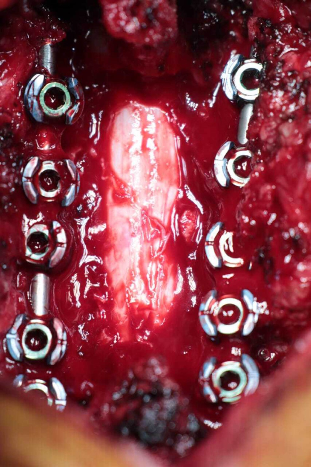 En los casos refractarios a la terapia no invasiva estándar, la cirugía es el siguiente paso. La cual implica laminectomía de las vértebras afectadas, lo que da como resultado la descompresión de la médula espinal y los nervios. Además, a menudo se realiza una fusión vertebral, que proporciona soporte mecánico adicional a la región debilitada por la cirugía.12,13