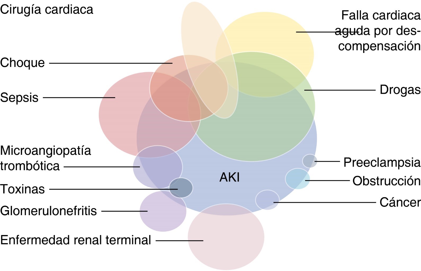 La LRA se puede presentar como parte de una complicación de adquisición intrahospitalaria o como parte del espectro de presentación del paciente con lo que se denomina "LRA adquirida en la comunidad". La distinción tiene un contexto que denota la etiología y que difiere de acuerdo con el medio en el que se identifica. La adquisición intrahospitalaria secundaria al empleo de fármacos o nefrotóxicos es más frecuente en países de primer mundo y el origen comunitario es más común en países de menores ingresos, en los cuales la etiología más frecuente se asocia a procesos infecciosos.2
