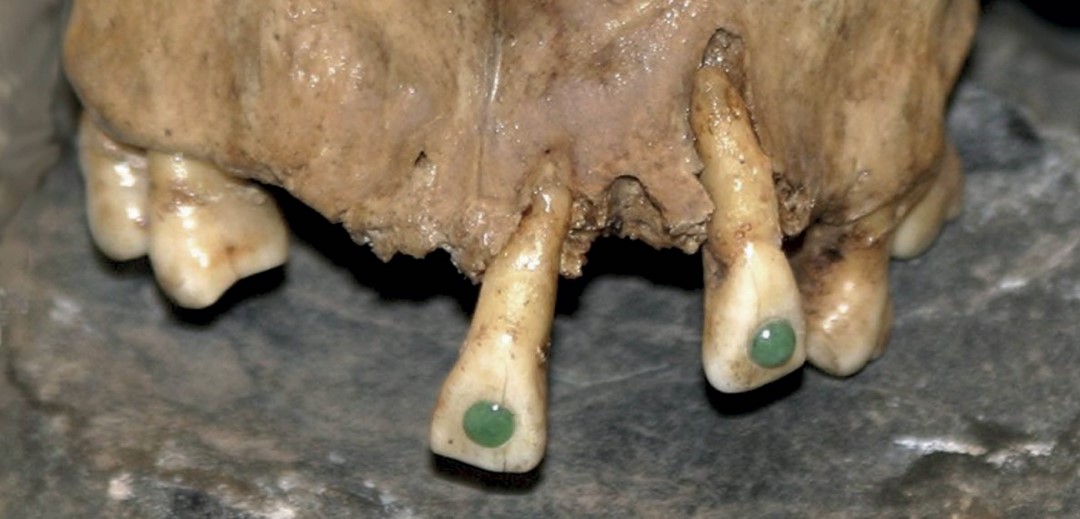 Desde hace 50 años de vida profesional, desde estudiante he tenido la oportunidad de indagar y conocer muchas fuentes de nuestra historia, particularmente las relacionadas a nuestra profesión. La primera visita al departamento de antropología física en los sótanos del Museo de Antropología fue para lograr observar piezas arqueológicas originales, que sólo se veían en libros, de las incrustaciones dentales de piedras preciosas que las antiguas poblaciones mesoamericanas, como los mayas, aztecas y teotihuacanos realizaron como expresión cultural y definición de su estatus social. Estas prácticas estaban acompañadas de una serie de rituales, a menudo relacionados con la religión y su identidad, que reflejaban su creencia de la conexión entre lo físico y lo espiritual. La práctica común entre la aristocracia maya eran las incrustaciones dentales de piedras preciosas en sus dientes frontales utilizando jade, malaquita, cuarzo, obsidiana e incluso conchas marinas, que fueron insertadas en alveolos dentarios con fines estéticos para reemplazar dientes incisivos superiores e inferiores, como los encontrados en Honduras (Figura 5).