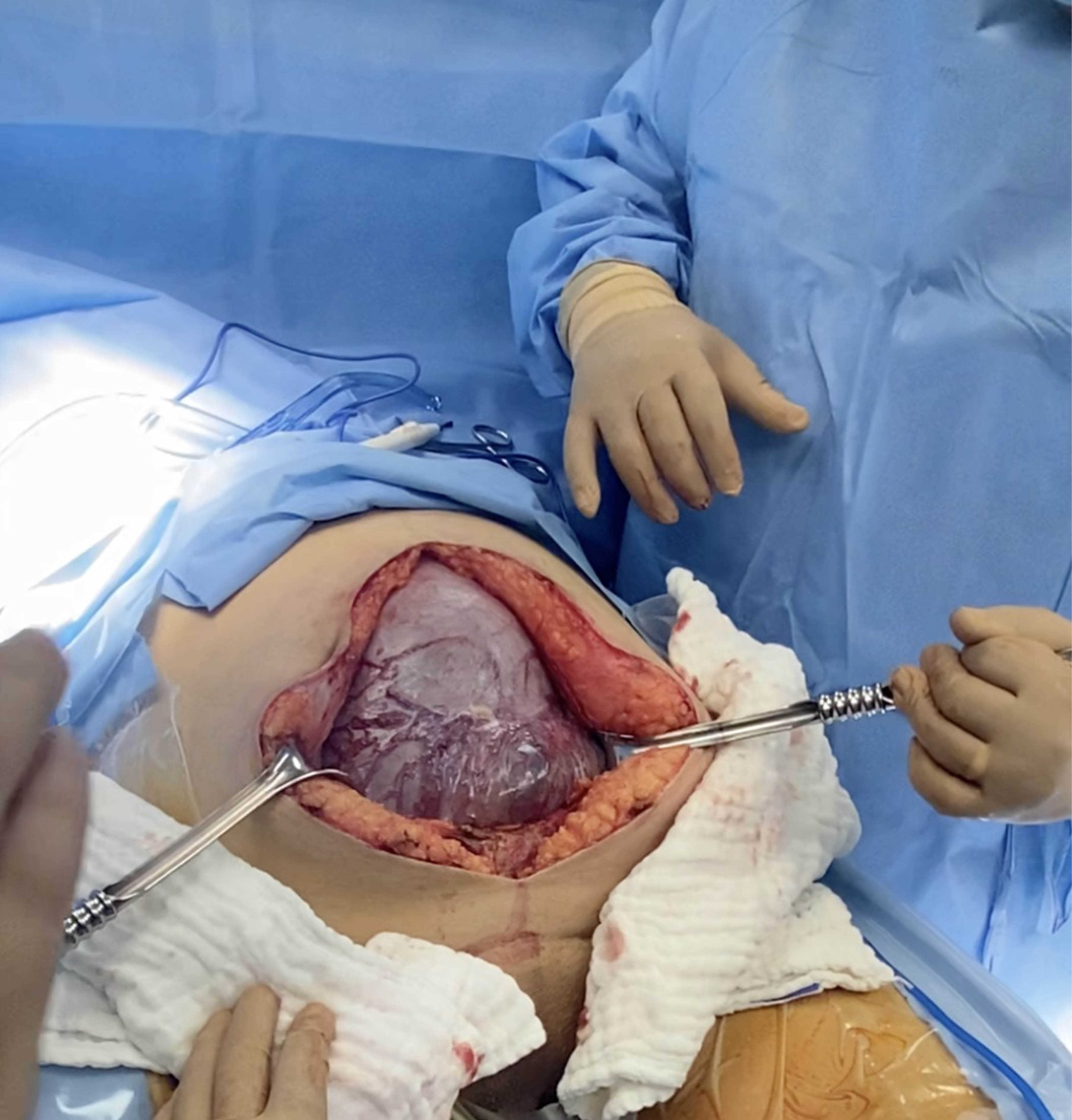 Femenino de 32 años, cuarta gesta, una cesárea, dos abortos, O Rh negativo. Cursó con amenaza de aborto y colestasis intrahepática del embarazo. En la semana 29, el ultrasonido confirmó "placenta previa central total"; la MRI del 25 de agosto del 2022 mostró embarazo de 32 semanas, placenta previa total, datos de acretismo (percreta), extensión al cérvix (Figura 1). Se realizó cesárea histerectomía el 9 de septiembre de 2022, a las 35.3 semanas.