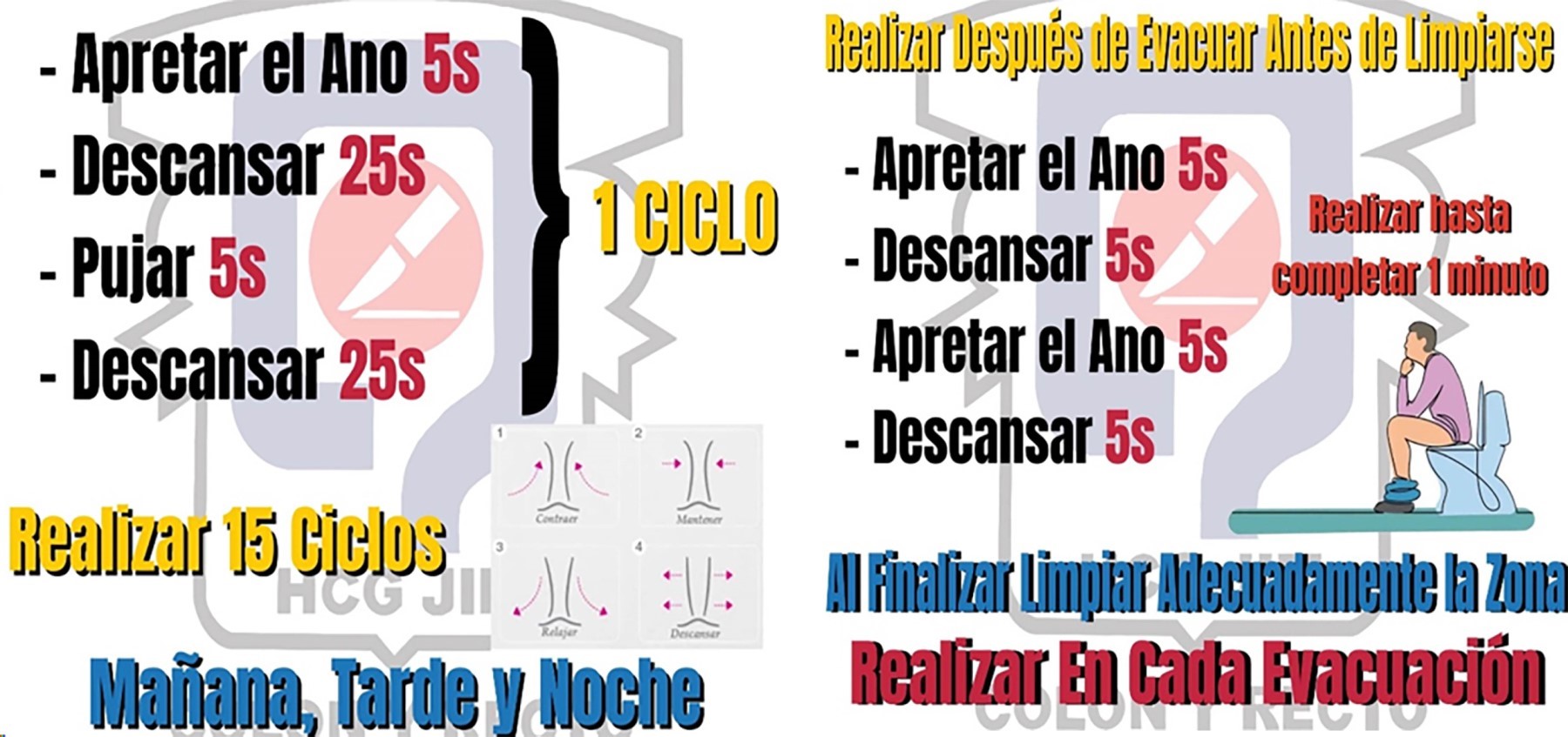 Estas mejoras en la calidad de vida van de la mano con la recuperación de la fisiología normal de la continencia y aumento de la fuerza por parte de la musculatura pélvica y del complejo esfinteriano, a diferencia de otros ejercicios pélvicos, bien descritos en la literatura, los ejercicios propuestos en este trabajo plantean la realización de contracción voluntaria del esfínter anal luego de la defecación para que, por presión mecánica se termine de ocluir totalmente el canal anal, generar hermetismo del mismo y evite de esta forma la humedad y el escurrimiento fecal tan molesto para el paciente; además, al realizar estos ejercicios antes del aseo del paciente contribuyen a mejorar las percepciones nocioceptivas del momento de la defecación y estimula la rehabilitación del complejo sistema de defecación-continencia.