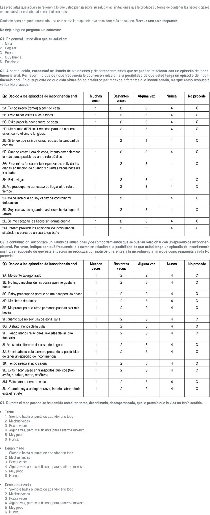 Al finalizar el estudio después de cuatro meses, además de ver mejoría en los ítems previamente descritos, también se informó de resultados significativos en ítems de comportamiento como al estar fuera de casa intentar estar siempre lo más cerca posible de un retrete público, intentar prevenir los episodios de incontinencia situándose cerca de un baño, sentirse deprimido, tener menos relaciones sexuales de las que desearía, tener siempre presente la posibilidad de tener un episodio de incontinencia y de al ir a un lugar nuevo intentar saber dónde está el retrete; además en ítems relacionados a la depresión como el estado general de salud, sentirse deprimido, sentir que no es una persona sana, disfrutar menos de la vida e ítems de seguimiento como sentirse avergonzado y preocupación porque otras personas puedan oler sus heces. Como podemos apreciar en los resultados aquí descritos, recomendamos la escala FIQL al ser una herramienta útil que mide de primera mano la calidad de vida en pacientes con incontinencia anal/soiling y esto ha sido ampliamente demostrado en la literatura.9,10