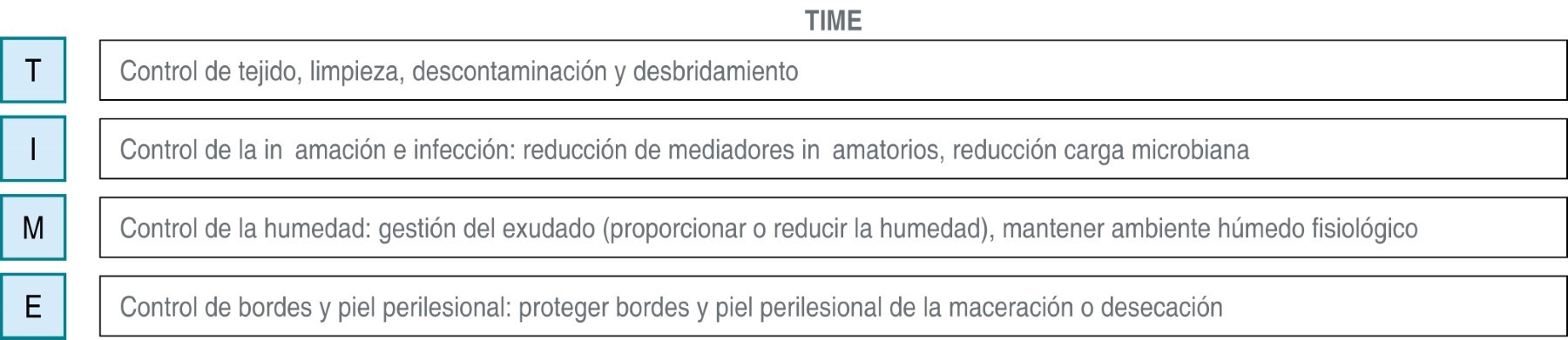 En el Bjork 3, debemos aplicar los conceptos básicos del TIME (Figura 7), debridando el tejido necrótico, controlando la humedad y controlando el foco séptico, usando toda la gama de recursos con la que contamos. En el Bjork 4, cuando ya está el abdomen congelado y tenemos una o múltiples fístulas, nuestro único trabajo es localizar el orificio proximal, y controlar su gasto, y en caso de ser posible, localizar el orificio distal para valorar el uso de fistuloclisis.