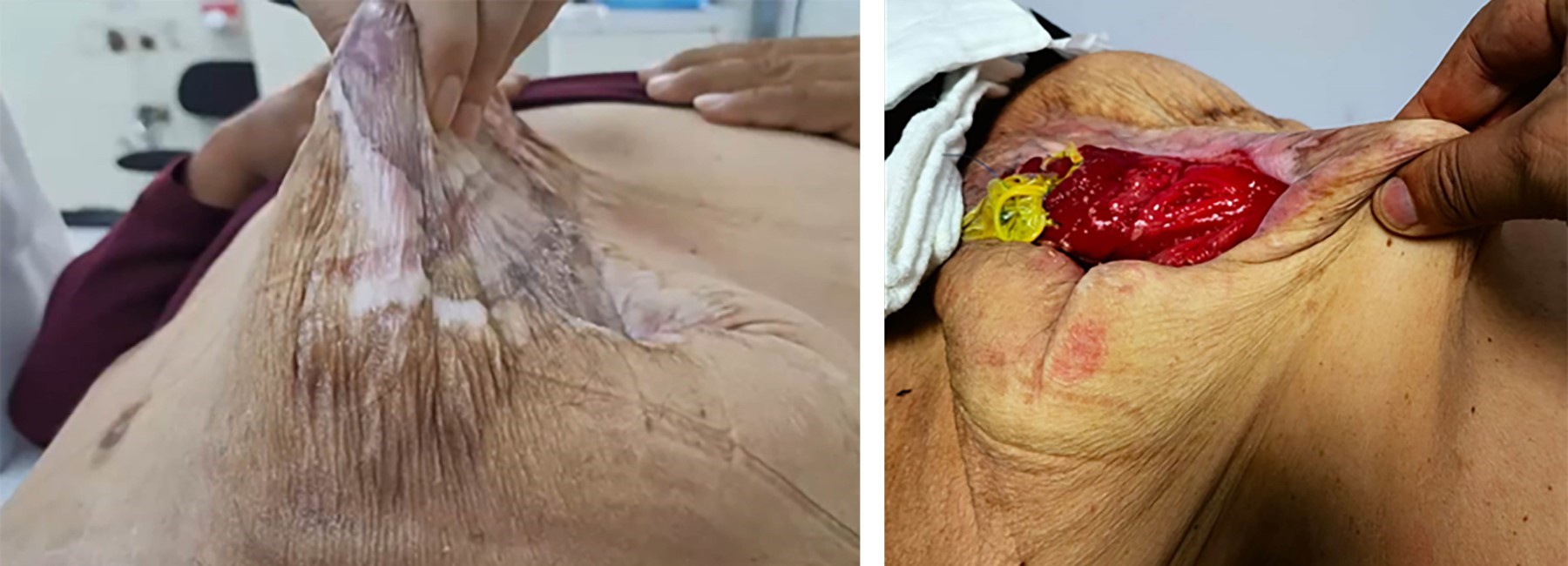 En ocasiones tenemos un estoma tan hundido que para un buen drenaje a través del condón tenemos que quitar parte de la piel y tejido celular subcutáneo, llegando a veces hasta la aponeurosis, en ocasiones es necesario retirar parte de ésta para poder controlarlo.4 Las guías de sepsis abdominal nos dicen que la parte más importante es el control del foco séptico, si queremos ser conservadores manteniendo una pared abdominal que principalmente es piel y grasa, y no cuidamos el intestino, estamos siendo incongruentes.