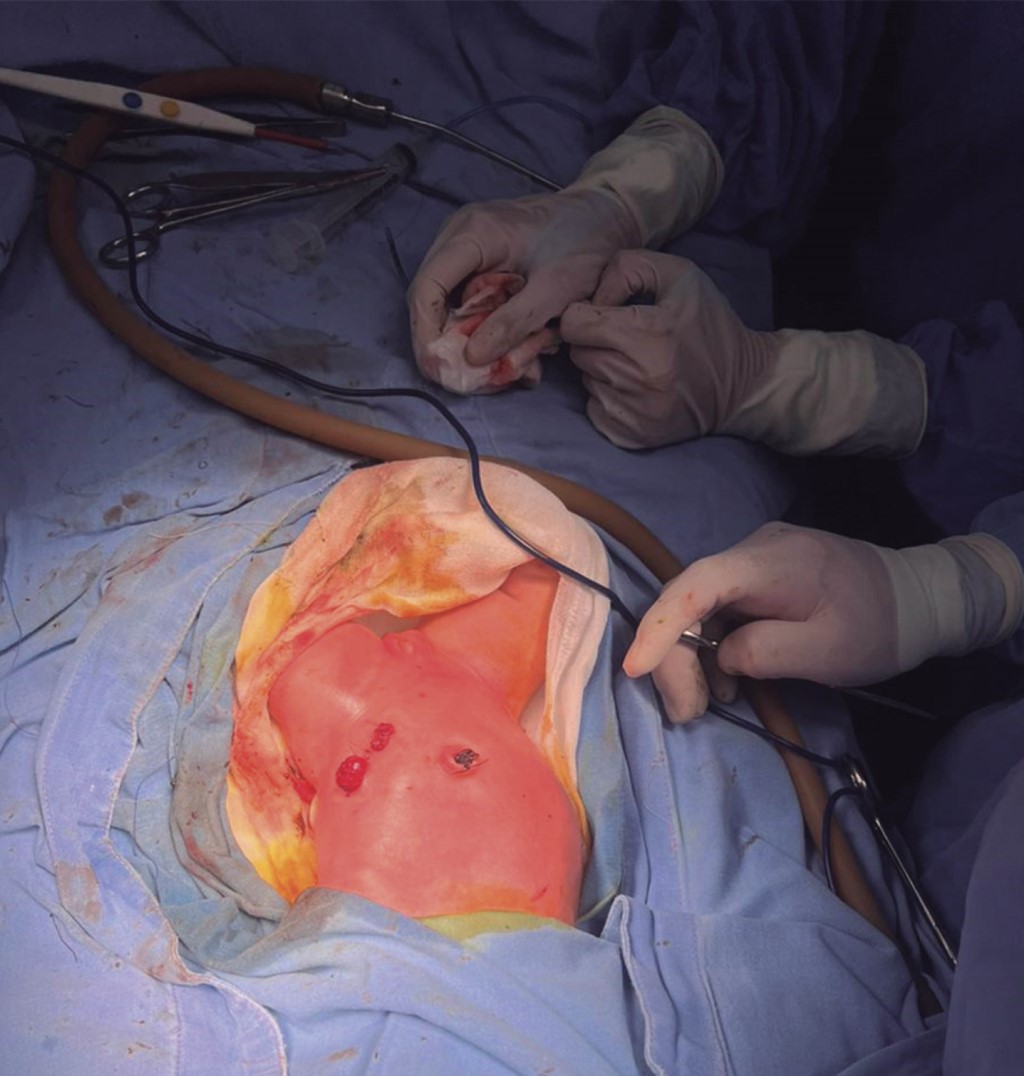 Se realizó exploración hacia retroperitoneo encontrando hidronefrosis renal derecha y agenesia renal izquierda, así como cavidad pélvica para identificar anexos, los cuales pertenecen al sexo femenino (ovario derecho e izquierdo y útero) confirmando el sexo de la paciente. Se realizó conteo de gasas y compresas verificando cuenta completa; se cerró cavidad abdominal por planos, afrontando aponeurosis con sutura absorbible (vicryl) 4-0 mediante técnica con surgete continuo, tejido celular subcutáneo con sutura absorbible (vicryl) 4-0 y piel con puntos Ashiff con sutura no absorbible (nylon) 5-0, dando así por terminado el tiempo quirúrgico sin complicaciones. Durante transquirúrgico, la paciente presentó desaturación súbita llegando hasta 30% a pesar de intubación orotraqueal; se realizaron maniobras de reanimación avanzada para paro cardiorrespiratorio sin respuesta, con tres ciclos de compresiones y administración de vasoactivos (norepinefrina) sin mejoría, con ausencia de signos vitales y hora de muerte a las 17:07 horas.