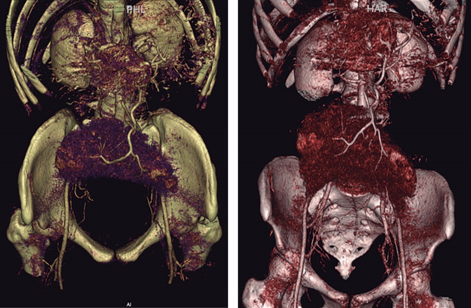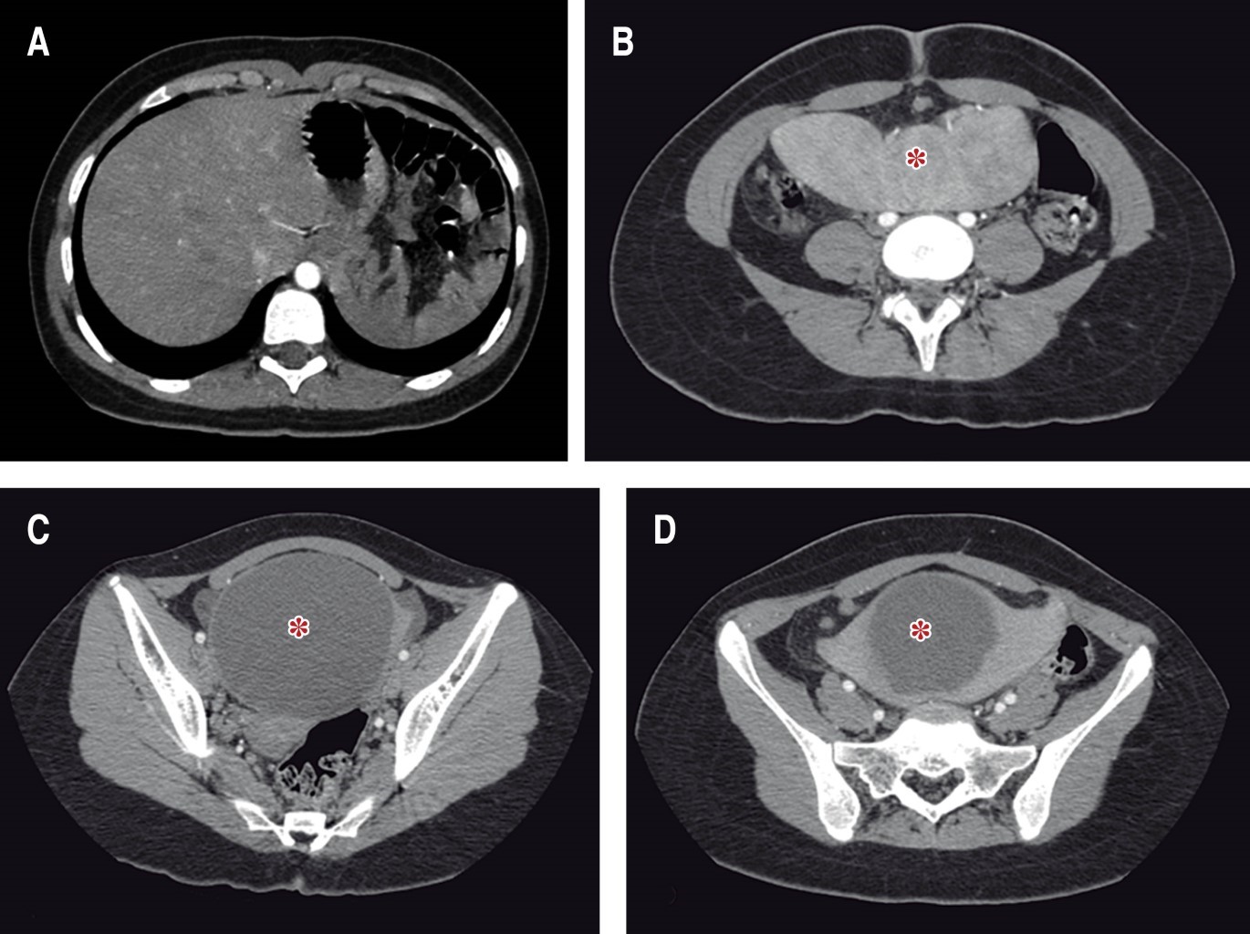 Se trata de paciente femenino de 16 años, sin antecedentes patológicos, quirúrgicos ni traumáticos, valorada por el Servicio de Ginecología por presentar aumento de volumen abdominal a nivel de cuadrante inferior izquierdo de seis meses de evolución, asociado con dolor crónico intermitente de un mes de evolución sin relación al ciclo hormonal.