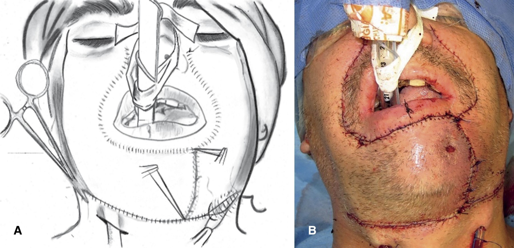 Técnica quirúrgica del colgajo cervicofacial bilateral para reconstrucción de región mentoniana y submentoniana