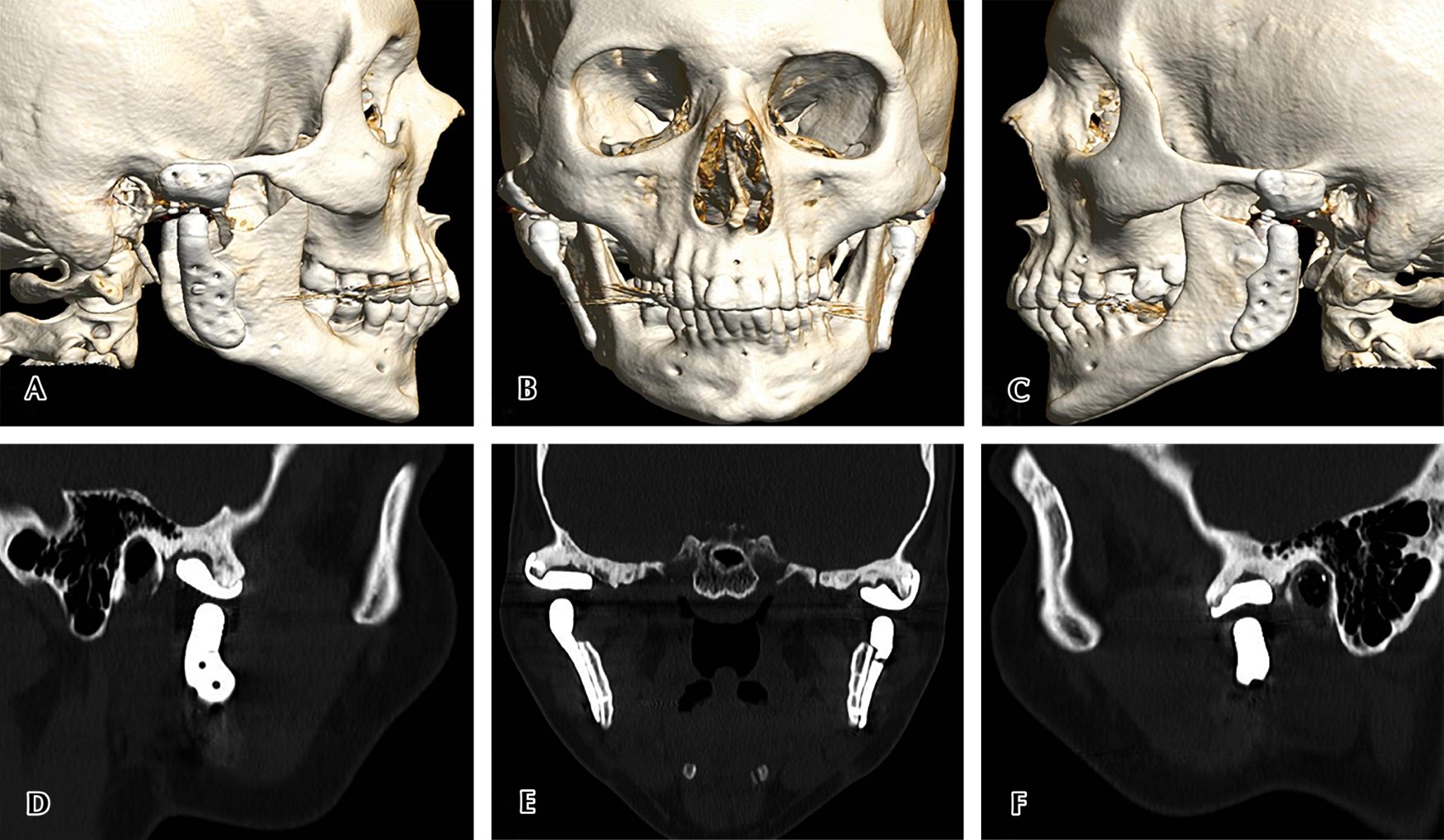 El reemplazo articular bilateral, como se realizó en este caso, ha mostrado ser una solución eficaz para restaurar la función mandibular y mejorar la calidad de vida en pacientes con daño articular severo.12 Los resultados postoperatorios mostraron una mejora significativa en la función mandibular, con una reducción del dolor en la escala visual analógica (EVA) 1 o 2 en algunos momentos de alta demanda funcional, aumento de la apertura bucal a 35 mm y una mejoría generalizada en las capacidades de masticación y habla, lo que se tradujo en una mejora importante en la calidad de vida de la paciente.